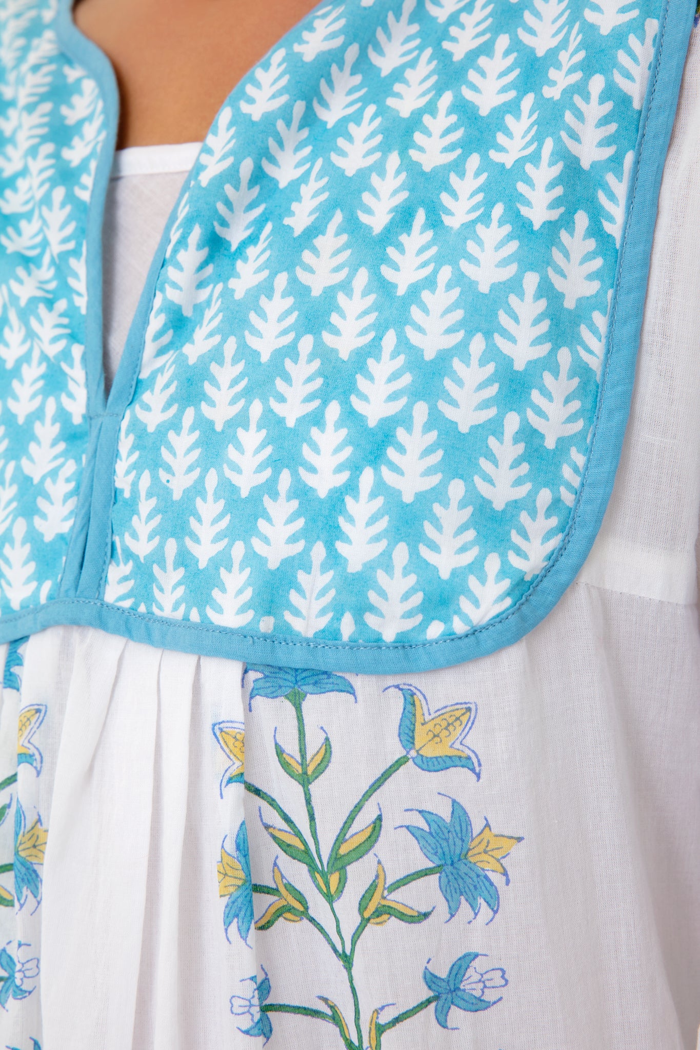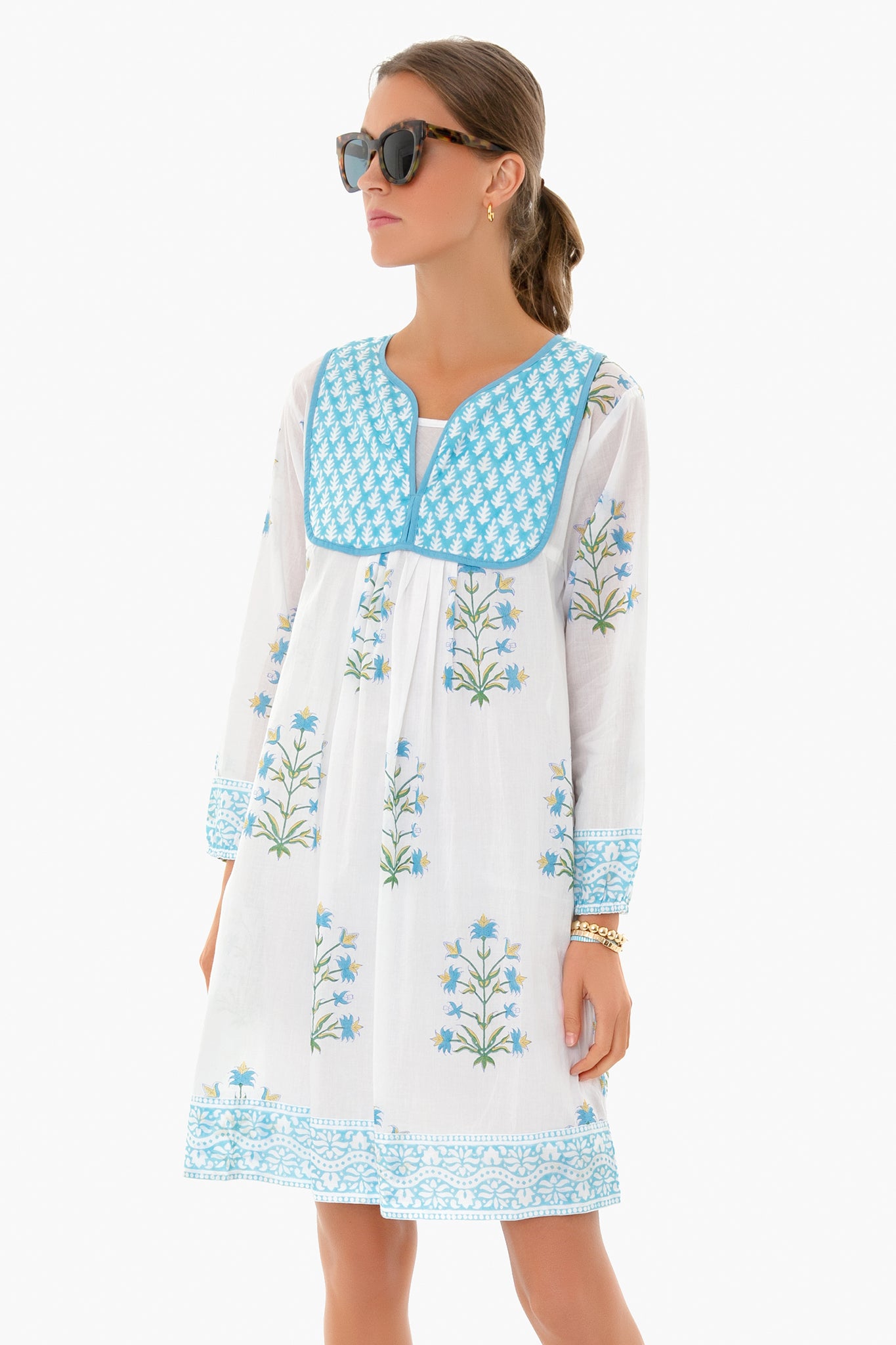 With a loose fit, elasticated long sleeves, and knee-length silhouette, the Cornflower Blue Lily Jaipur Dress features a breezy fit and island aesthetic. Comfortable and chic, you’ll want to wear this caftan for days by the sea and nights dining al fresco this resort season.