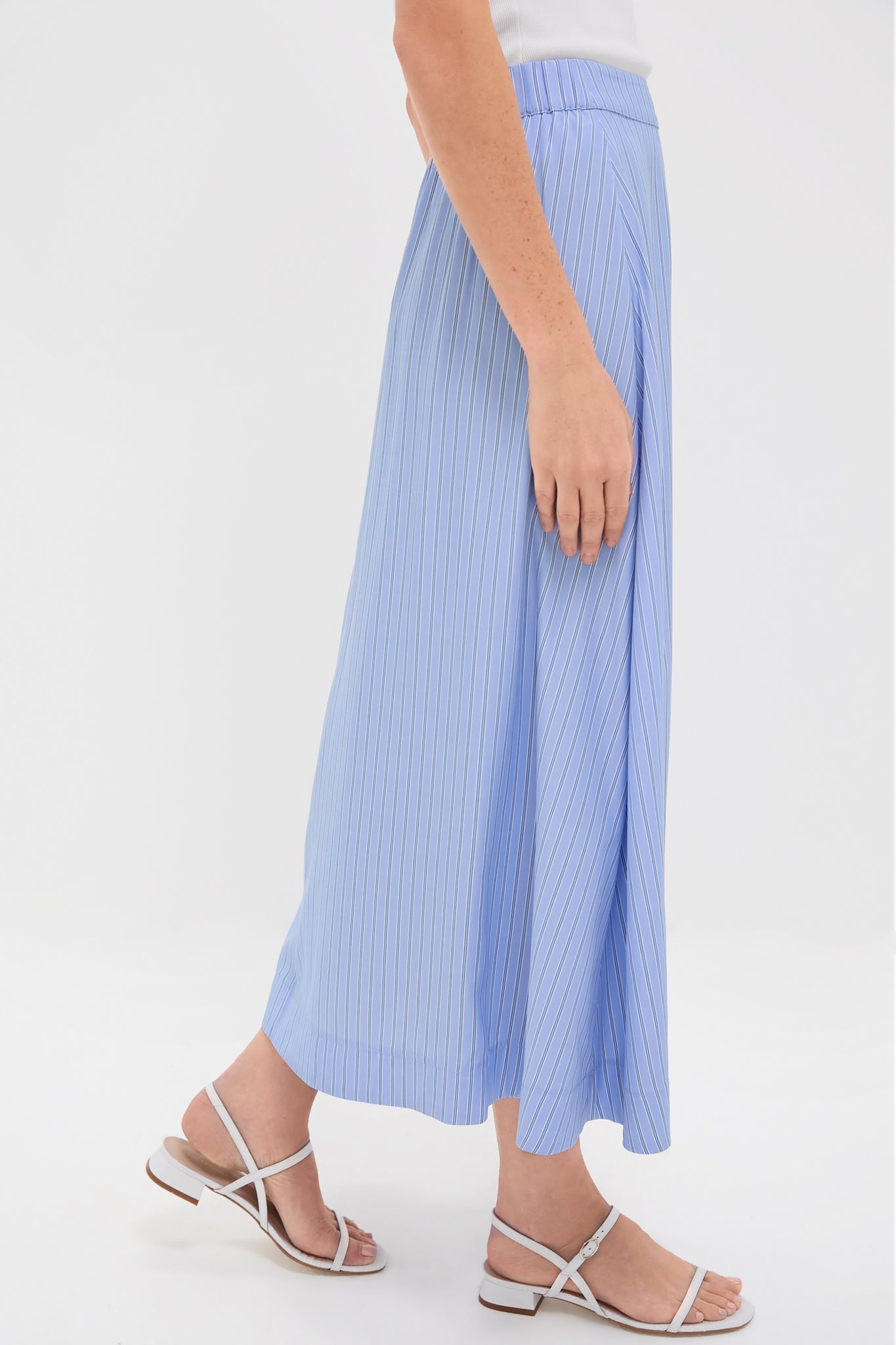 The Cornflower Blue Stripe Evelyn Skirt is an easy feminine style with vintage-appeal. A clean A-line silhouette, this midi features a side zip closure and elastic back for perfect fit. The classic blue and white striped pattern will pair perfectly with a simple white tank and sneakers, or dressed up with the matching Cornflower Blue Stripe Ava Jacket for a sophisticated set!