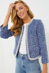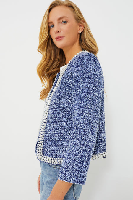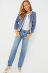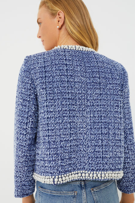 On-trend and elegant as ever, Cosmic Zen and French Navy Gabrielle Jacket is a très chic closet essential. Crafted from metallic tweed, this boxy silhouette features a round neck with long sleeves. Adorned with faux pearl accents, this stunner will instantly elevate your outfit with an air of elegance. Wear it open over a dress, or as is with your favorite pants or a skirt, you’re sure to earn compliments.
