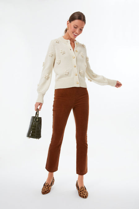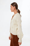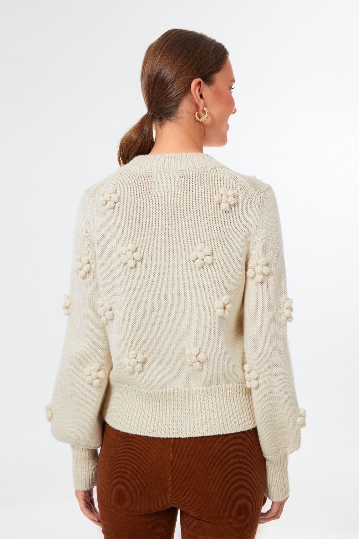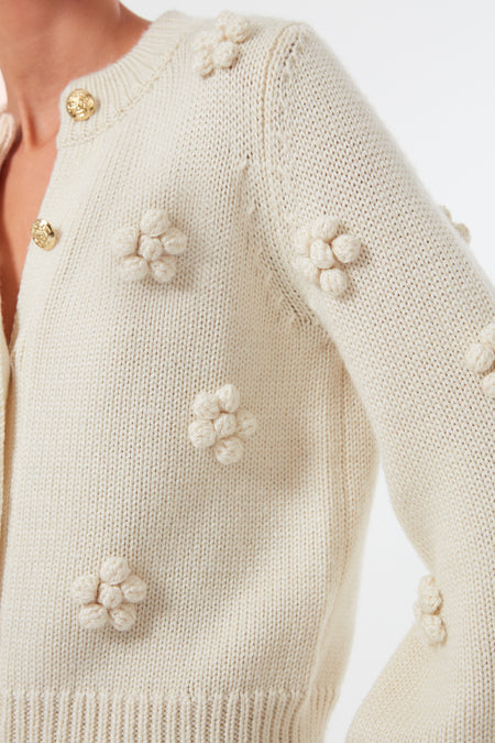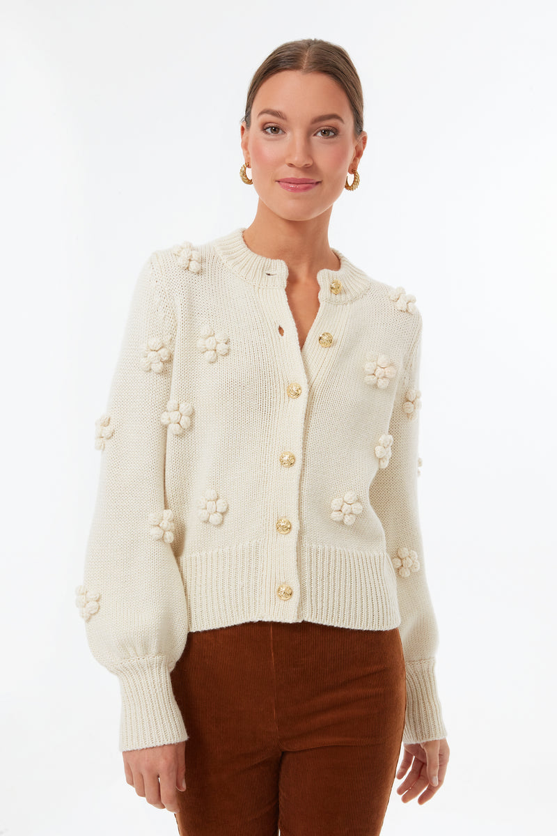 Chunky, cozy and always chic- the Camellia Cardigan takes the very best elements from the classic style and updates it. Featuring exaggerated bishop sleeves, textured puffy flowers, gold buttons, and a slightly cropped, but not too short length that makes it perfect for layering over dresses or styled solo with high waisted pants. Dressed up or down, in the office or out to dinner, the possibilities are endless with this transitional piece.