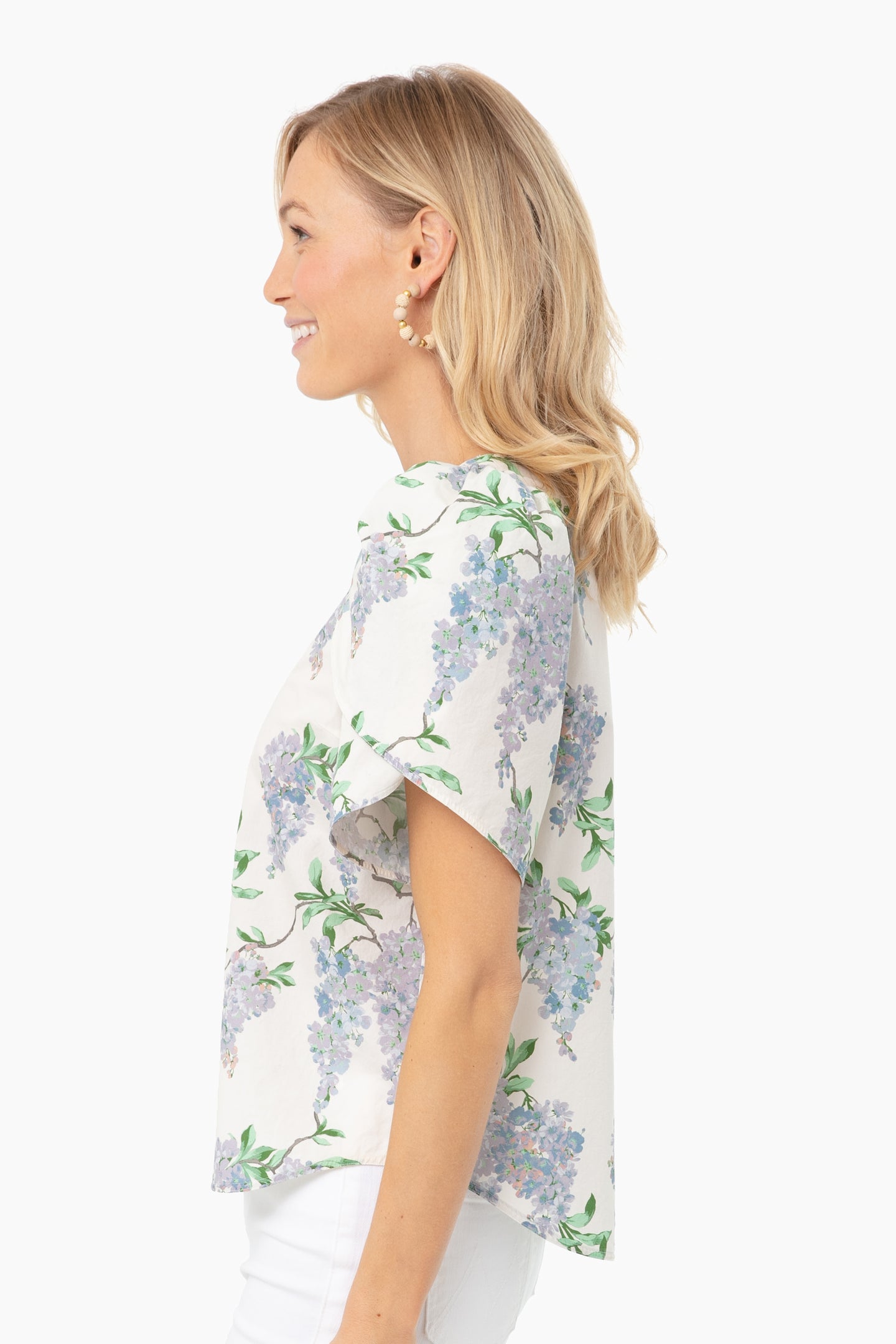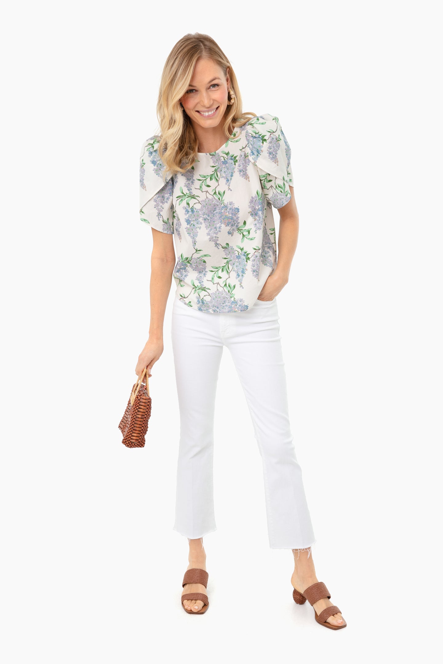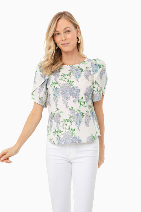 The Cream Combo Short Sleeve Wisteria Top is floral, feminine and flirty. Featuring a boxy fit and slightly puff, elbow-length sleeves, this is perfect for the sping.