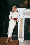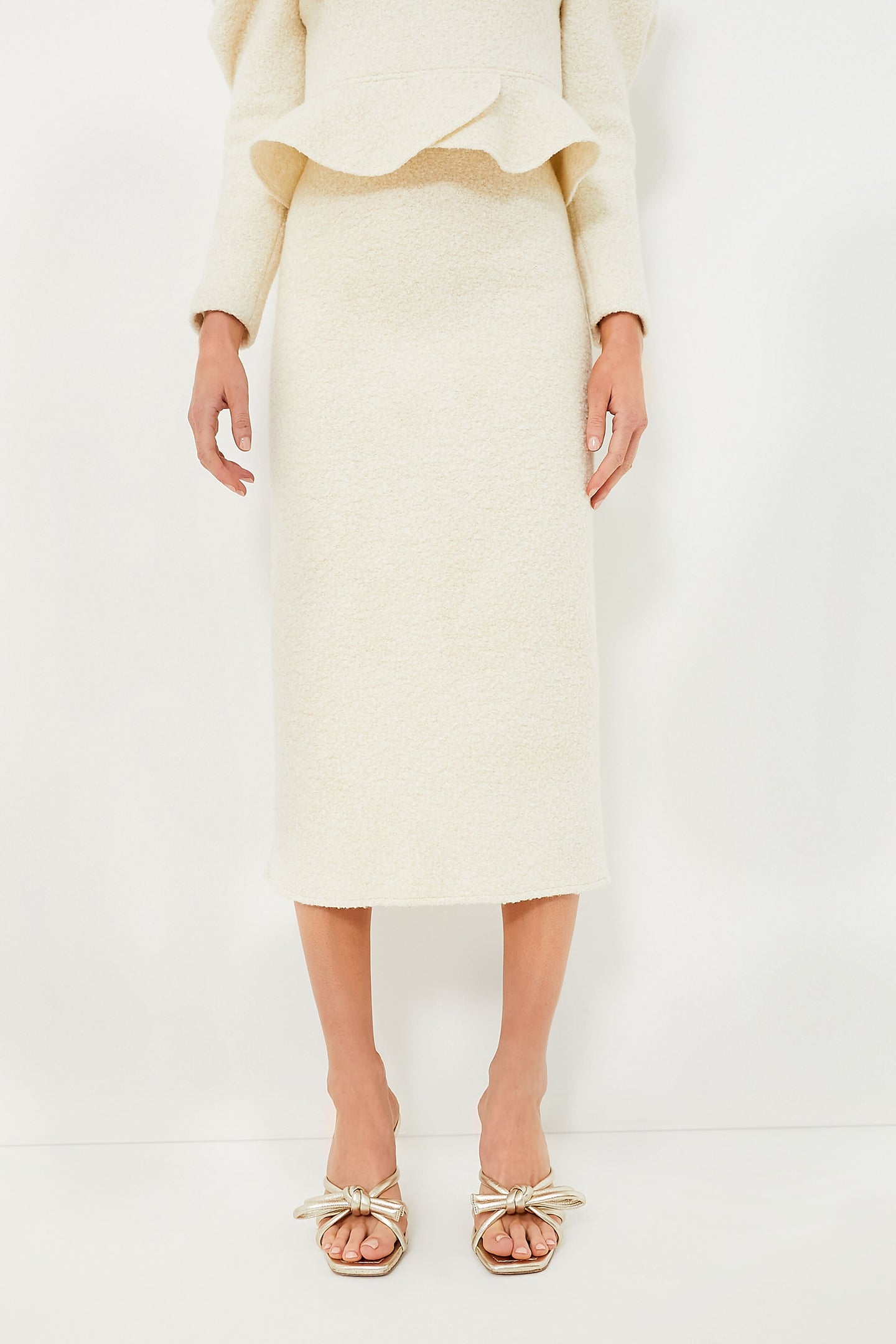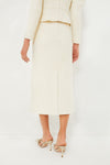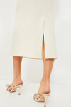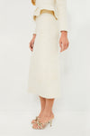Exquisitely simple, the Cream Peri A-Line Skirt is an elegant and tasteful addition to your closet. The long, straight silhouette and neutral color creates a sleek appearance that will compliment your outfit however you style it. We are pairing this with the Cream Pia Peplum Sweater and a gold necklace to complete the set, or with a maroon turtleneck and gold heels for a stylish dinner party look.