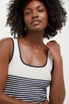 A striped bodice adds nautical flair to this sleeveless maxi dress boasting a flowy skirt that makes it perfect for moving through the sunny season. We are styling it with sandals and a tote for all of our weekend activities!