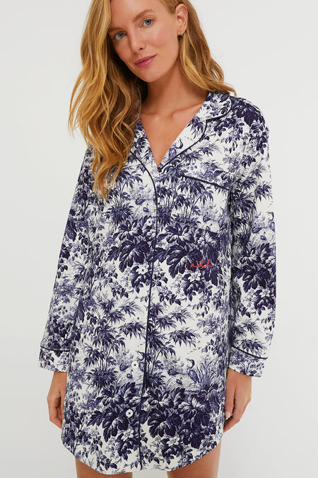 A classic button-down night shirt featuring a collared neckline, long sleeves, and a shirttail hem. Made in a super-soft fabric, this is the perfect lounge wear for cozy nights at home.