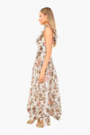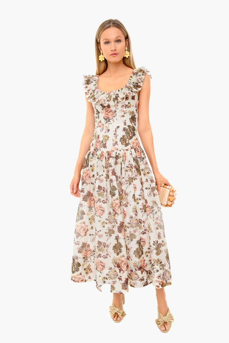 The Coretta Dress features a bouquet printed organza fabric. Defined by a scoop neckline, intricate pleated ruffle overlay, and vertical seams down the bodice, this is an ultra-flattering frock. From flats to espadrilles, this will take you from date night to a bridal shower.