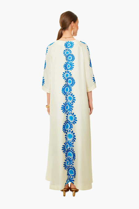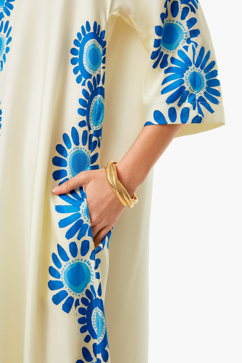 The Daisy Placee Azzurro Muumuu Dress is extra special. With a v-neckline and elbow-length sleeves, it will glide you around the room with ease and an elegance. Cut from glossy silk-twill fabric with a hand-printed daisy motif, this floor-skimming gown is perfect for vacation and dressy occasions. Add gold jewelry for a sun-kissed look.
