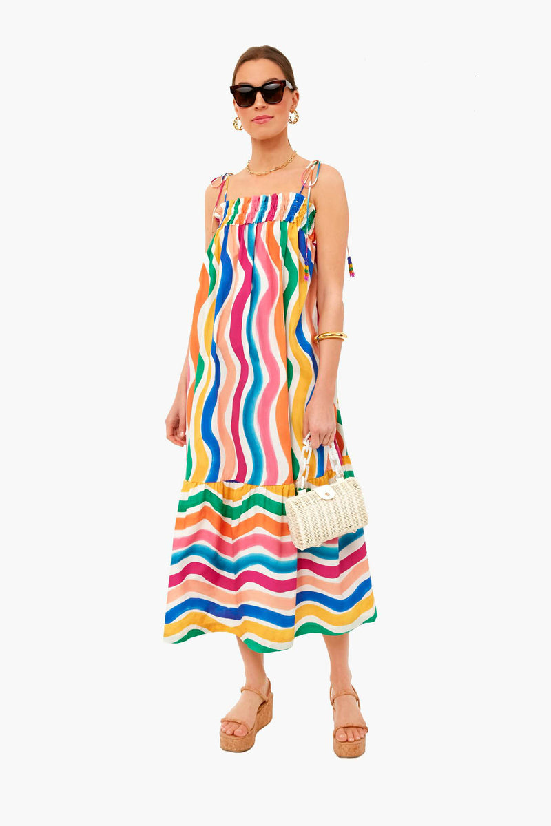 A staple that delivers joy: the Dancing Stripes Tie Strap Midi Dress is a fresh, timeless option for sunny seasons! It has a cozy fit to follow your bold moves, beaded tassels at shoulders, and the print to level up whatever plans you have in mind. It plays well with those fresh sandals you love and your carefree vibe.