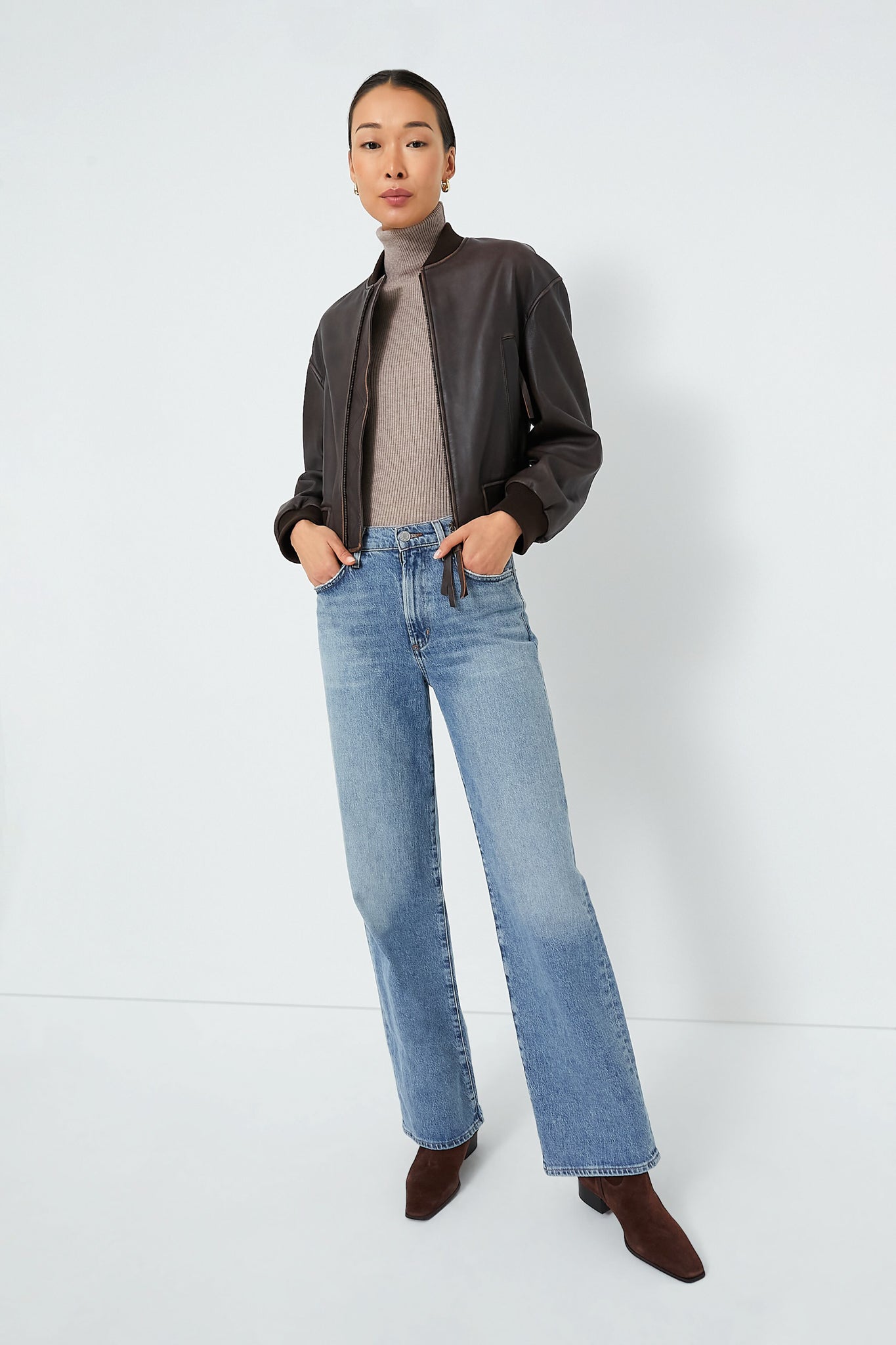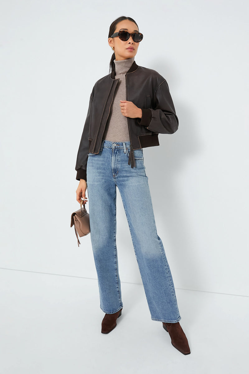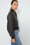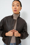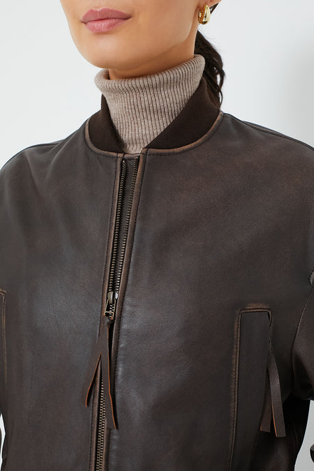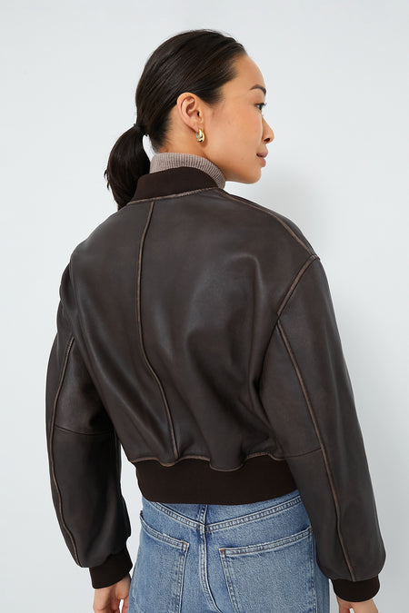 The Dark Brown Hiltex Jacket is a timeless super chic addition to your wardrobe. Decked in with varsity details, this bomber jacket is crafted from soft leather with a distinctive worn-in-look finish. Boasting a metal two-way fastening and finished with rib-knit collar, hem, and cuffs, pair with your favorite trousers, pumps, and button-down for a desk to drinks look, or pair it with denim and gold hoops for everyday.