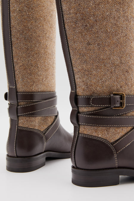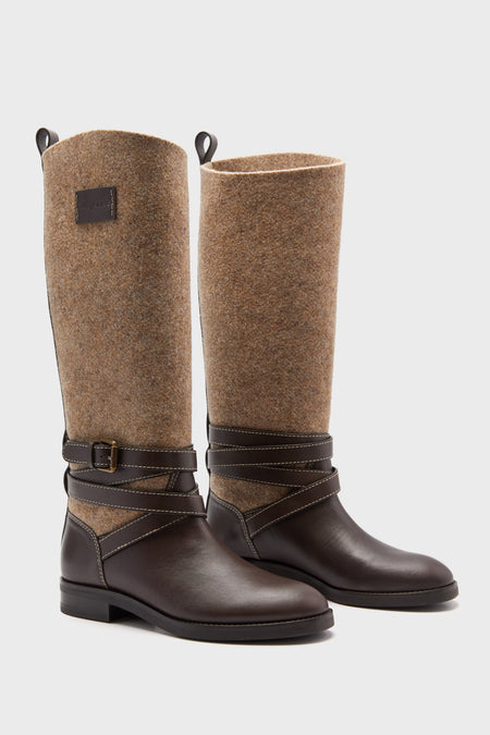Up your shoe game with the ultra-chic Dark Brown Anim Mix Mat Boots. These classic boots feature elevated details such as wrap-around ankle straps and a mixed media design. Pair with a tweed mini skirt and blazer for an autumnal look, or with wide leg denim and a button down for an everyday style.