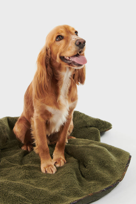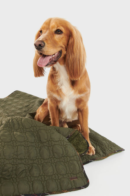The Dark Olive Dog Bone Quilted Blanket is a cosy staple for your canine companion. It's crafted in a soft teddy fleece fabric – detailed with tartan trims – that they'll love to come home to after a long walk.