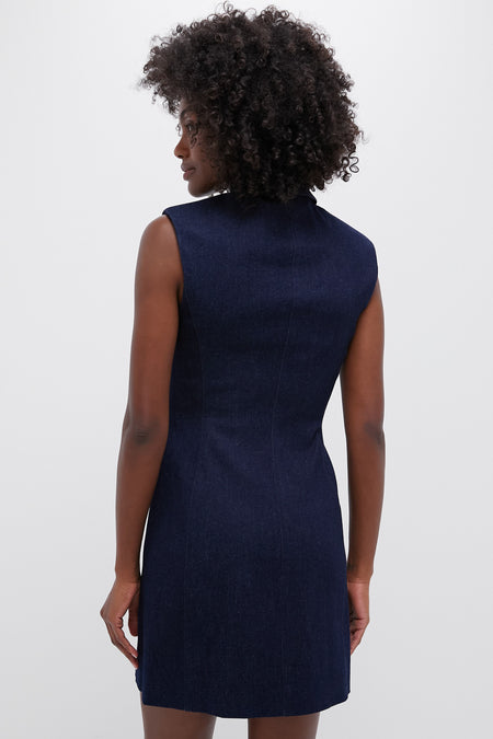 Expertly tailored from premium stretch cotton, the Serina jean minidress is fitted at the waist and falls to a slight flare. Darts at the hip, a trim collar and a gold cabochon button at the neckline complete the streamlined look. Wear this fitted denim dress with a nude slingback for chic sophistication.