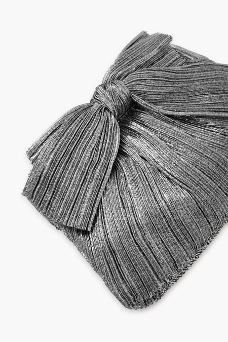 - Pleated silver lamé bow