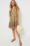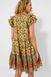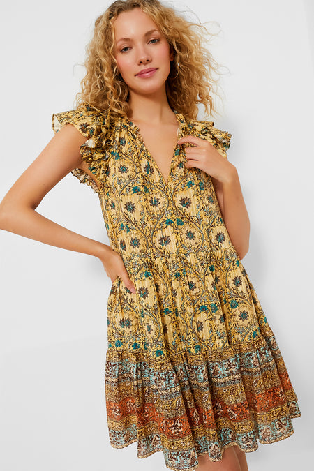 The Coletta Dress is cut from an airy shadow stripe fabrication that’s awash in soft blue, orange, and red botanicals inspired by a 19th century Persian print. This mini dress features a flowy, A-line silhouette framed by flutter sleeves, side pockets, and delicate neckties that create a keyhole front. Pair with sandals for a more casual approach or heels for an elevated ensemble!