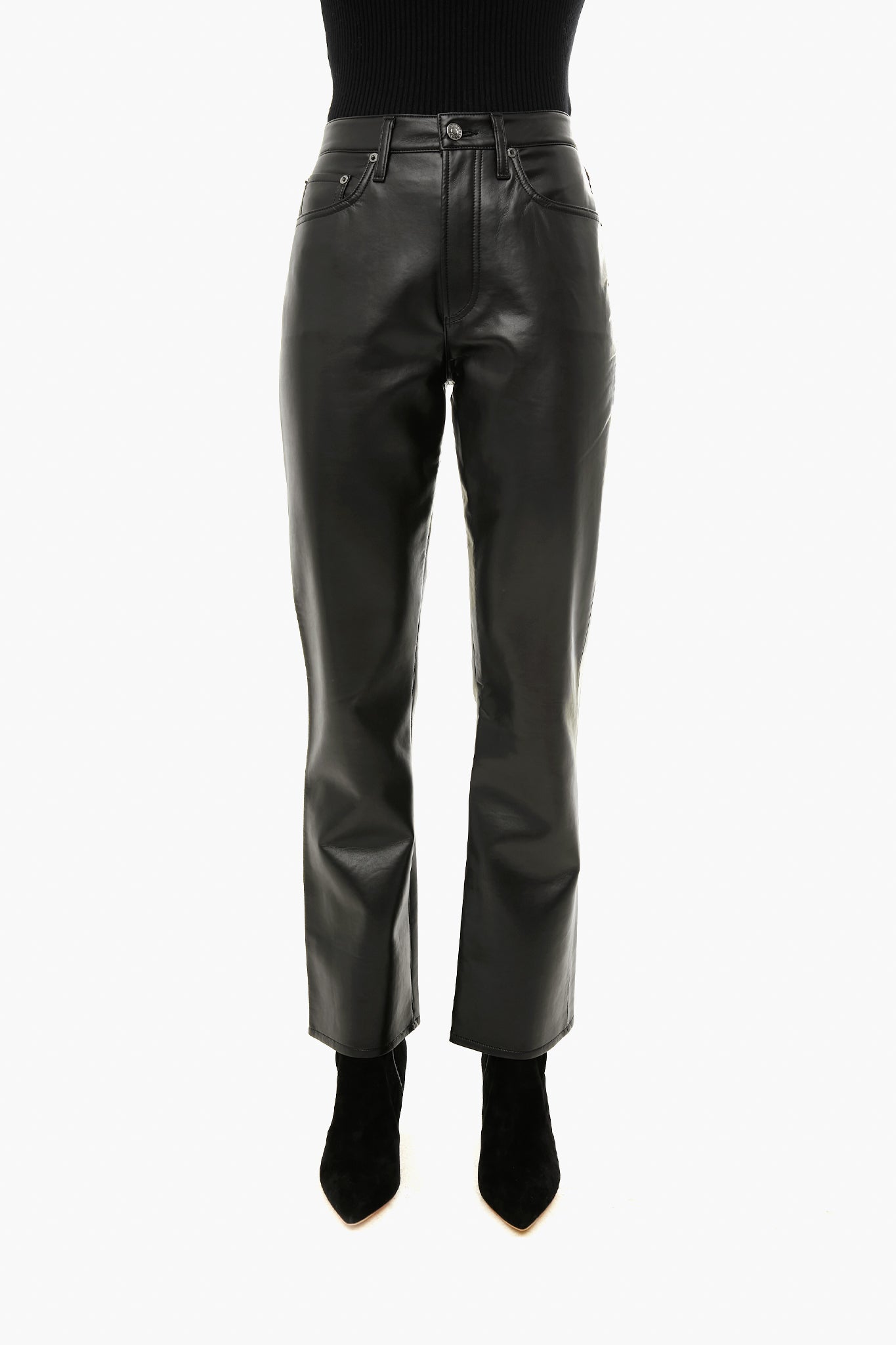 These pants feature a subtle 90s-inspired bootcut with a polished recycled leather finish. Buttery soft with a luxe matte look, you’ll want to wear them with everything from tees to chunky knits!