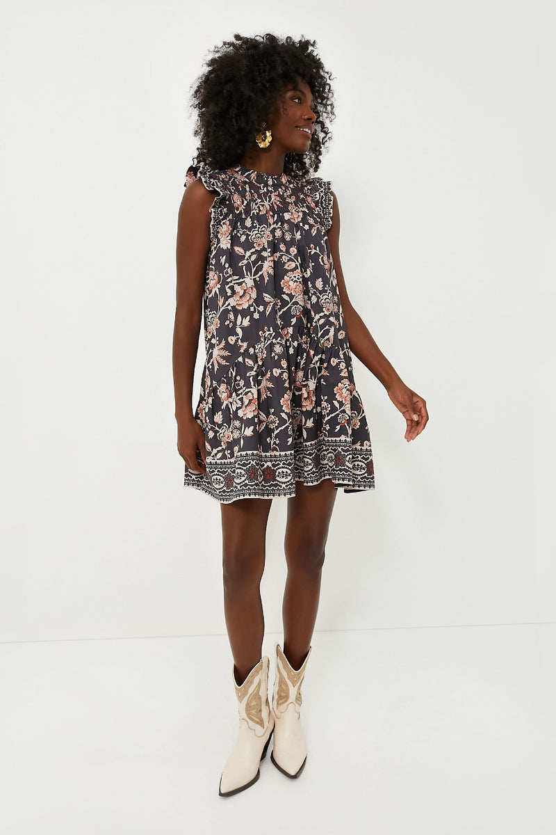 A feminine and classic look, the Viola Dress is sure to be a year-round favorite. This boasts a classic shift shape featuring a smocked yoke, ruffle hem, and pleated short sleeve. The flutter sleeves and floral design add a touch of grace, and the mini length makes this a season-less look. Pair with flats and gold hoops for a coffee date, or boots and a crossbody for going to a bookstore!
