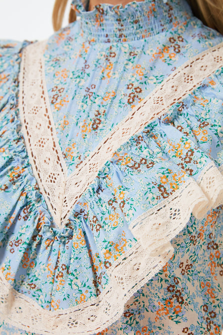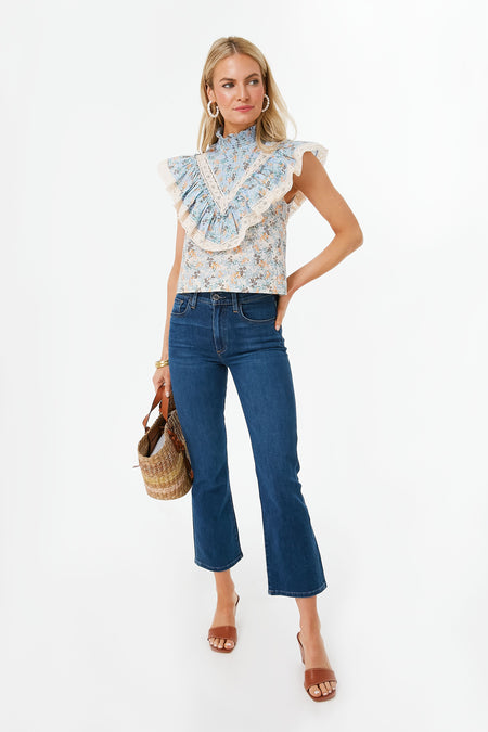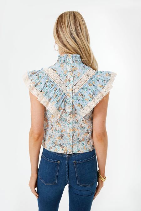 It's all in the details for the Ditsy Floral Combo Katrina Top. A feminine blouse that has it all — smocking, pintucking, a statement ruffle, crocheted lace trim... need we say more? — this multi-patterned number is delicate and fun in equal measure. A button down back adds an extra bit of intrigue, making this a very unique piece that deserves a place in your closet. Pair with denim and bright jewelry for a fresh date night ensemble, or with the coordinating skirt and a tote for a showstopping vacation look.