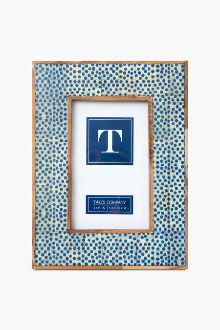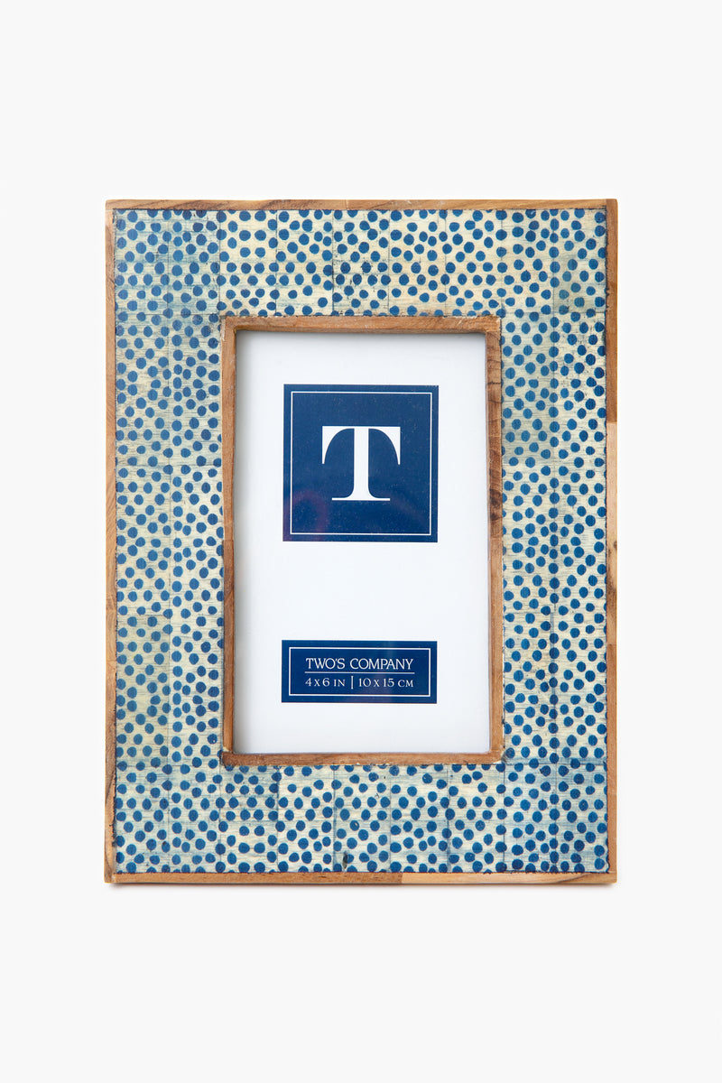 Created by artisans in India, this frame is covered in a beautiful dotted pattern created from a mosaic. Framed in mango wood for a unique touch, this will add a pop of color to any room. Fill it with photographs of your favorite memories with friends and family for a piece of decor that will make you smile every time.