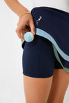 - Material: 80% Recycled Nylon, 20% Elastane (outer skirt), 88% Recycled Polyester, 12% Elastane (interior shorts)