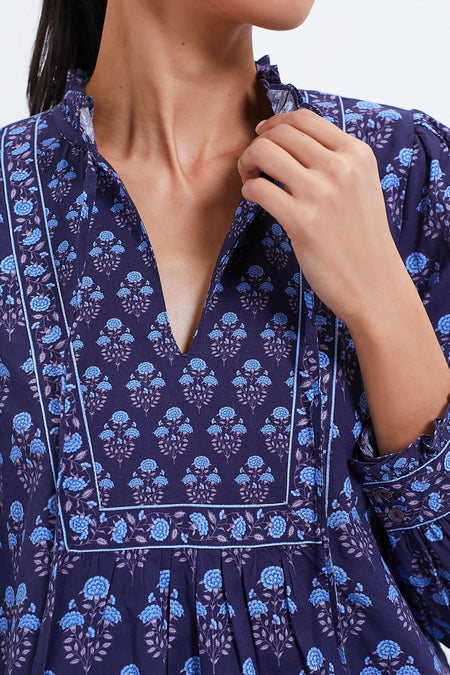 Crafted from a rich blend of cotton and hemp fabric, the Nell mini is both breathable and comfy, perfect for now and the cooler days ahead. With a pretty mix of print scales and border details, this style features a delicate yoke, flattering, keyhole neckline and relaxed, gathered fit. Throw on with boots and tights, this is an autumn favorite you’ll be wearing again and again.