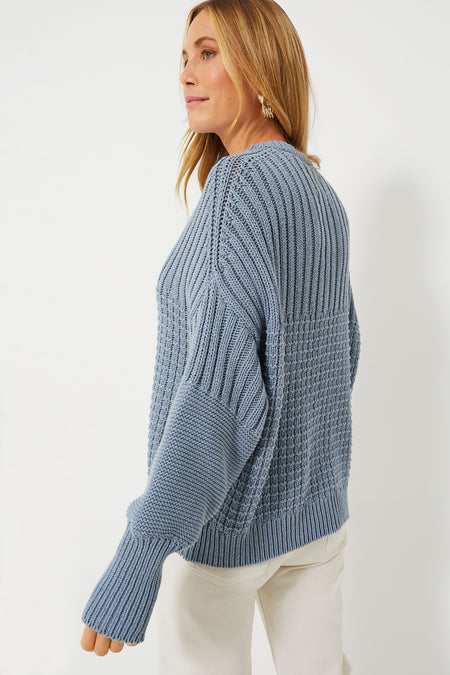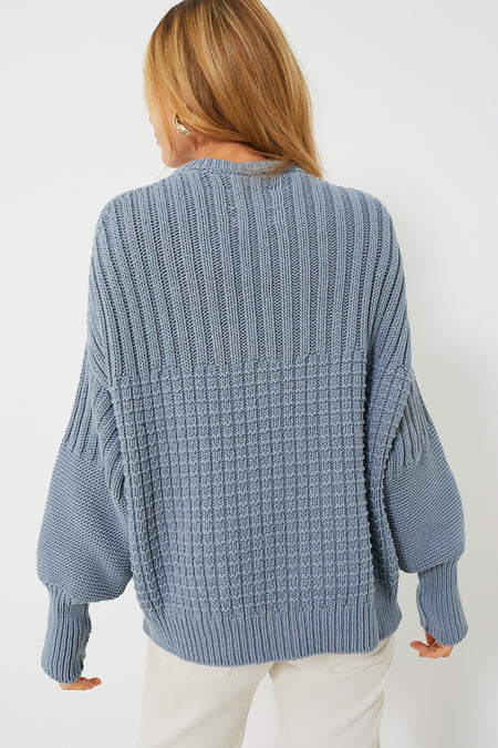 Specially made just for your closet, the Dusty Blue Delcia Sweater is crafted sustainably with care. We adore the unique half-and-half stitching that delivers the perfect touch of texture for a cozy feel. Style this fabulously boxy knit over a slip dress with boots for a dynamic desk to drinks look, or pair with your favorite denim and flats for a classic ensemble.