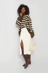 Tailored for a glamorous look with minimal effort, the Ecru Vegan Leather Skirt is an essential in any transitional wardrobe. Complete with a flattering high rise, a front slit at the hem for a touch of sultry energy and functional movement, and a winter-white colorway we adore, this midi creates a sleek silhouette. Pair it with turtlenecks, cardigans, tees, and more for an elevated look.