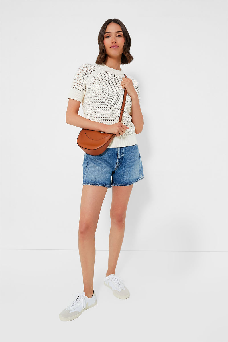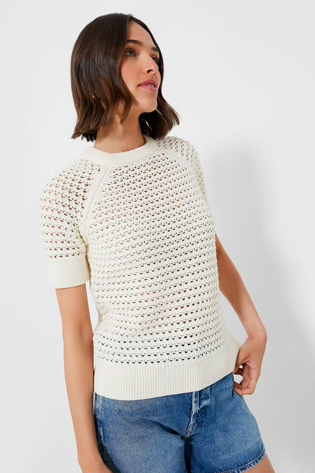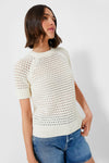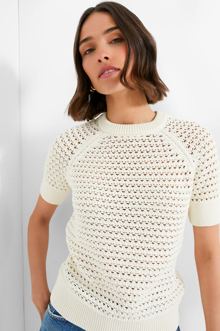 Designed for comfort and style, this breathable knit tee pairs effortlessly with everything in your closet. Experience contemporary charm with its intricate crochet detailing and versatile crew neck design. Pair with denim, skirts, trousers, or easy sweats!