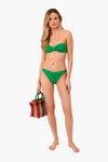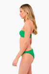 Featuring the brand's classic crinkle style with an updated sweetheart neckline, the Emerald Jean Bikini hugs the body in all the right places thanks to the material, which stretches and retracts to give shape without losing its own. Add sandals and sunglasses for a look that is sure to shine!