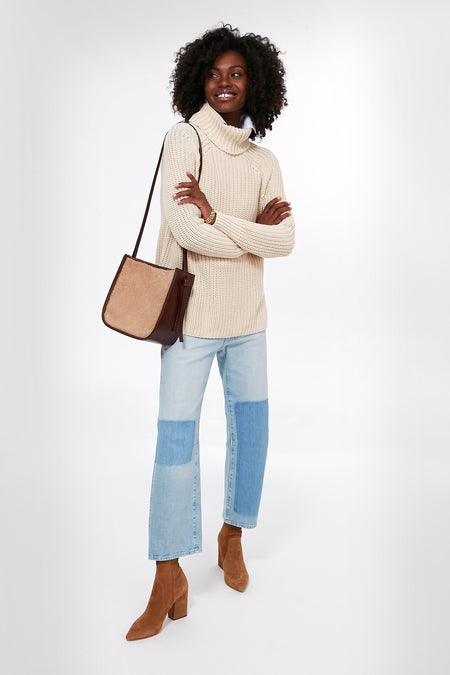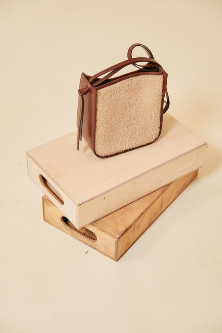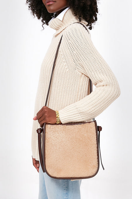 The Mackenzie Bag is a turned out crossbody tote made from espresso leather and sand-beige shearling. Featuring a crossbody strap, snap closure, full lining, and a large interior slip pocket, this bag is as chic as it is functional. Add a cozy knit and cool denim for a trendy look for drinks with friends.