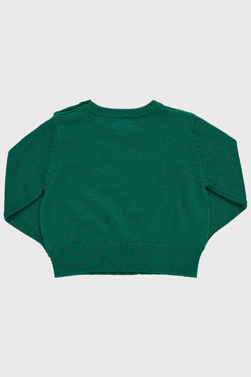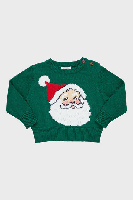 Sweater Weather! Keep your little guy cozy and playful this holiday season with the Evergreen Santa Oliver Sweater. Featuring a roomy fit and a cheerful Santa face, this top will have him feeling merry and bright in no time! Perfect for family gatherings, holiday parties, or even as a cozy everyday choice, pair it with jeans and sneakers.
