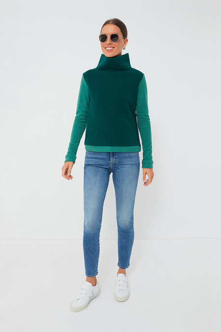 In a fresh new colorway exclusive to Tuckernuck, we love the cozy-cool look of the Emerald Jaguar Green Colorblock. With a high turtleneck that allows you to skip the scarf, long sleeves, and a banded hem at a slightly cropped length, this fleece is the perfect silhouette to throw on when you're craving comfort. Wear it with leggings and sneakers to grab a post-yoga class cappuccino, or style it with denim and a tote for running errands in style.