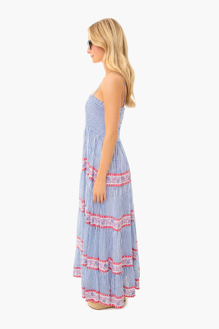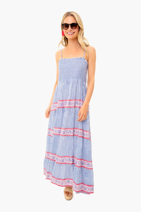 The Hamble Maxi Dress features adjustable spaghetti straps and a smocked back. Made from seersucker stripes and red floral tiered prints, this fully lined cotton style is breezy and twirl-worthy. Put your dancing shoes on, grab a cocktail, and you’re ready for a night of fun with friends!
