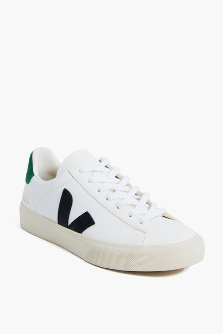 The Extra-White Black Emeraude Campo Sneakers update the brand's usual clean-lined minimalism with fun splashes of color. With a contrasting black logo patch and a forest green heel, these are a fresh twist on the classic white sneaker with a little bit of character. This slightly sportier silhouette is easy to style with anything from minis to midis, and leggings to denim. We love to wear them for all occasions, from school dropoffs to mimosa brunches with the girls!