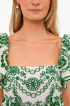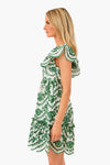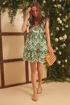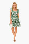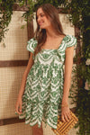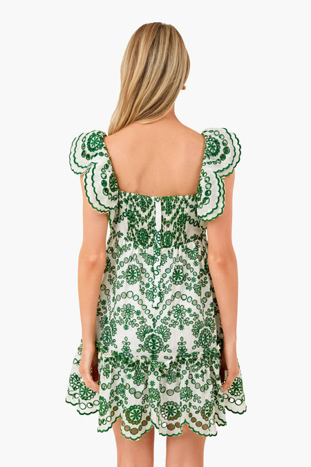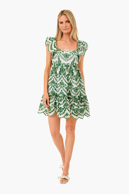 The Eyelet Olive Lexa Dress is made from scalloped green eyelet lace. Elegant yet flirty, this mini has a square neckline, flutter sleeves, and a tiered skirt. Style with sandals and gold jewelry for day and heels for night!