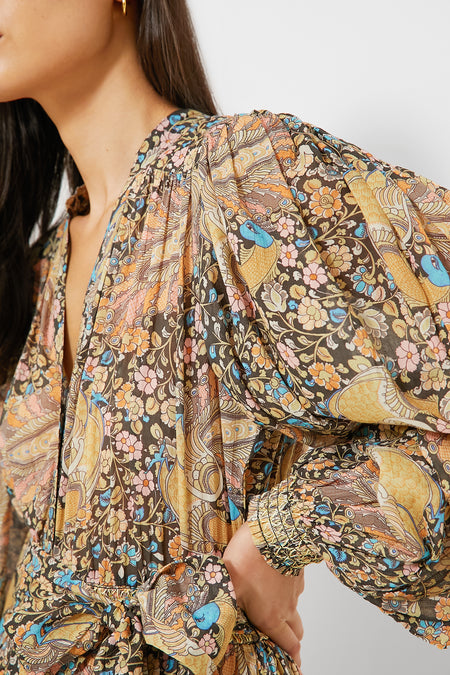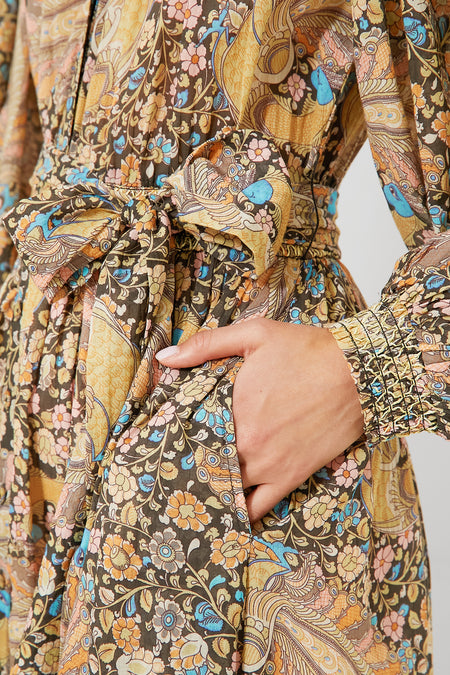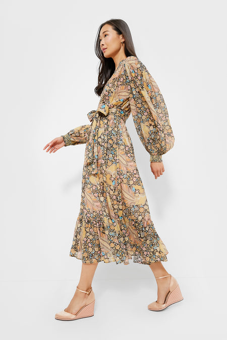 The Bohemian Midi Dress is a free-spirited style! This billowy midi has a relaxed silhouette, long bell sleeves, and a self-tie waist belt. It has beautiful gathered details, a flounced hemline, and golden embroidered details on the cuffs. Pair with heels or sandals for summertime soirees, and switch into boots for the fall!