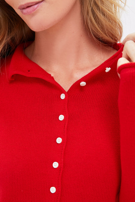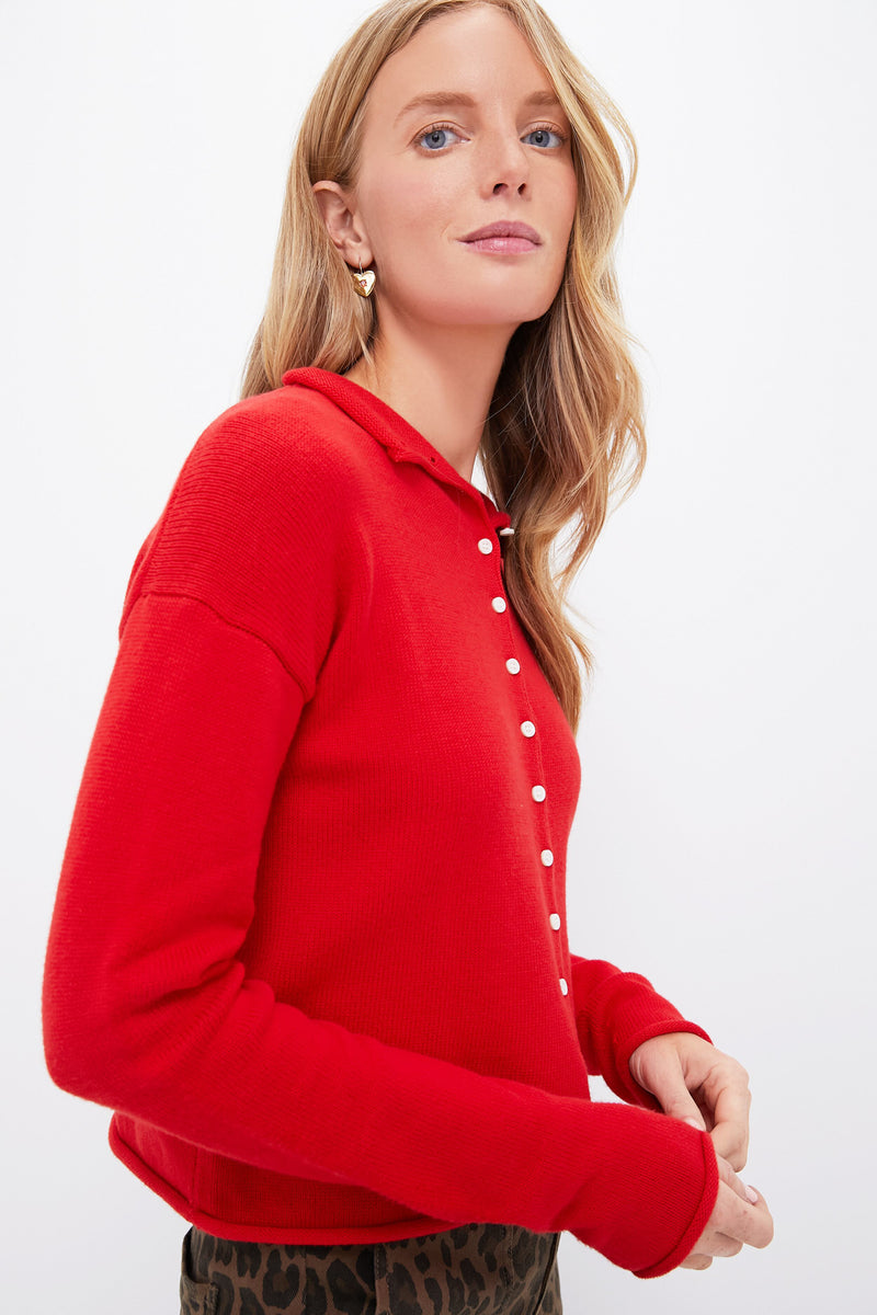 Classic and bold, the Fire Red Taylor Rollneck Cardigan deserves a place in any wardrobe. Crafted from super soft cotton-cashmere with a boxy, oversized silhouette and fitted sleeves with a cool roll-edge detail, you'll be wearing this everywhere from school drop-offs to meetings in the office to cute lunch dates.