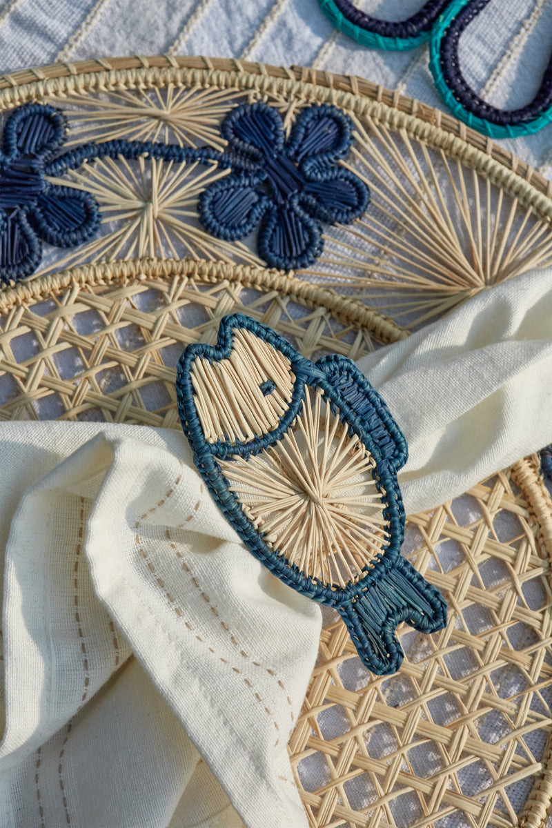 The Fish Napkin Ring is sold in a set of 4 and is sure to add a pop to your table. Beautifully crafted from Iraca palm and a wire frame, these are perfect for dinner parties or casual lunches!