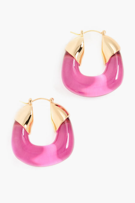 Topped with gold-plated brass, the Flamingo Organic Hoops are retro-inspired and easy to wear with a fresh pop of punchy pink. Featuring an acrylic hoop detail with a geometric shape, these earrings have a natural yet modern feel. We are wearing them with luxe coats, sweater dresses, and cocktail attire for the season ahead.