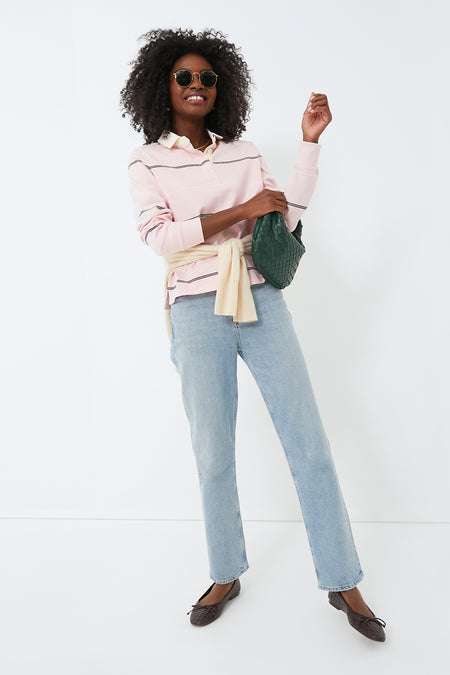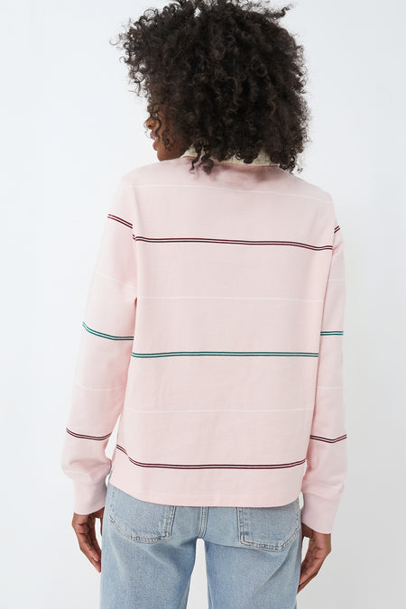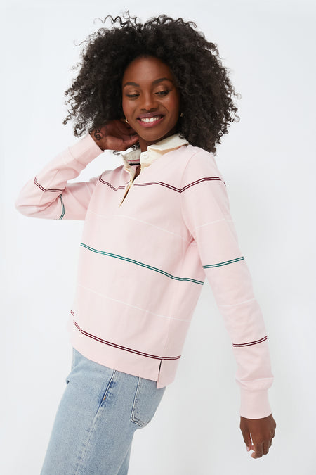 An updated take on a wardrobe classic, the Flamingo Stripe Heritage Rugby has all that preppy energy you're sure to love. With a timeless relaxed fit and a modern, slightly cropped hem length, this top features a spread collar and long sleeves that are refined and ready for anything. Pair with your go-to denim and flats for an off-duty weekend outfit, or throw on some sunnies and add a sweater over the shoulders to lean into the collegiate-chic look.