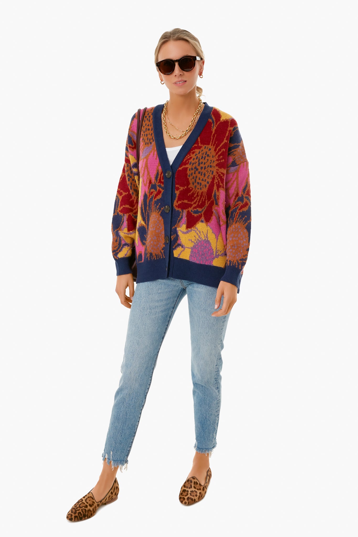 The Floral Dots Cardigan is a cheerful knit in an autumnal print. Cozy enough for chilly nights playing games by the bonfire, and chic enough for a day at the (virtual) office, this style is a must-have. Pair with gold jewelry and denim for a classic look.