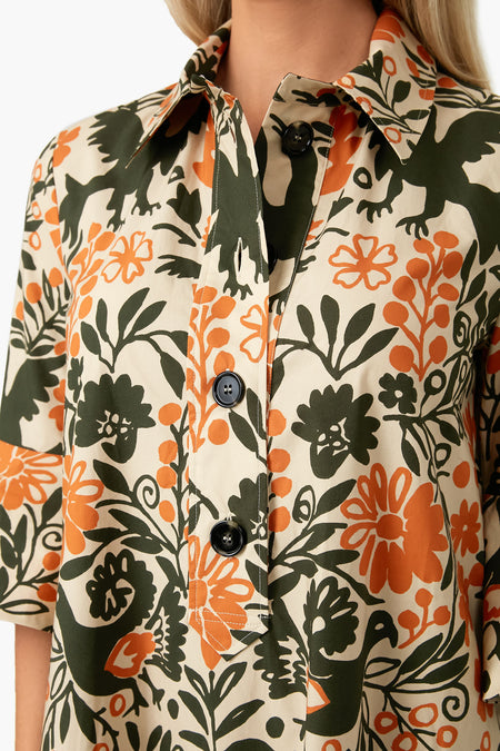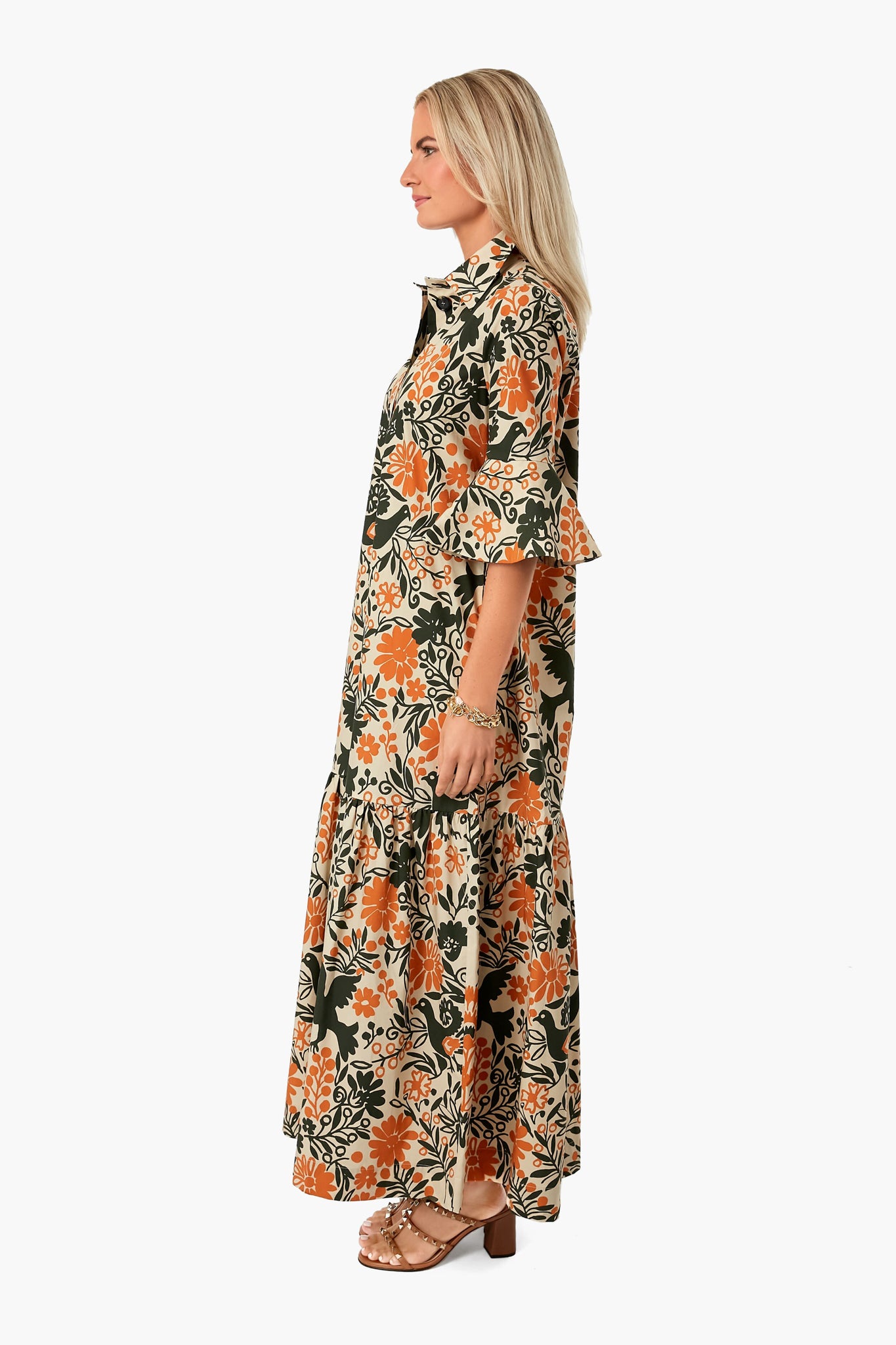 The Forest Artemis Dress is unique and dramatic. Cut in a voluminous shape with three-quarter length fluted sleeves, this maxi is as comfortable as it is show-stopping! A point collar and half button placket make this look slightly tailored and add versatility. Grab a tote bag and wear all day long, or wear with heels to dance the night away.