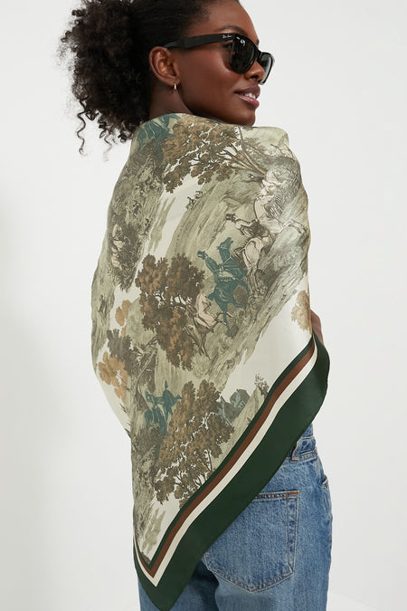Striking a balance between our mini scarves and our larger ones, the Foxhunt Toile Medium Silk Scarf is the perfect go-to when you need a pop of color. Versatile enough to be tied around the neck or worn over the shoulders like a shawl, this stunning style is adorned with one of our custom prints for a special touch. Spice up a neutral look with this darling number, make it a bold addition by pairing with brights, or gift one to a friend if you're feeling extra nice!