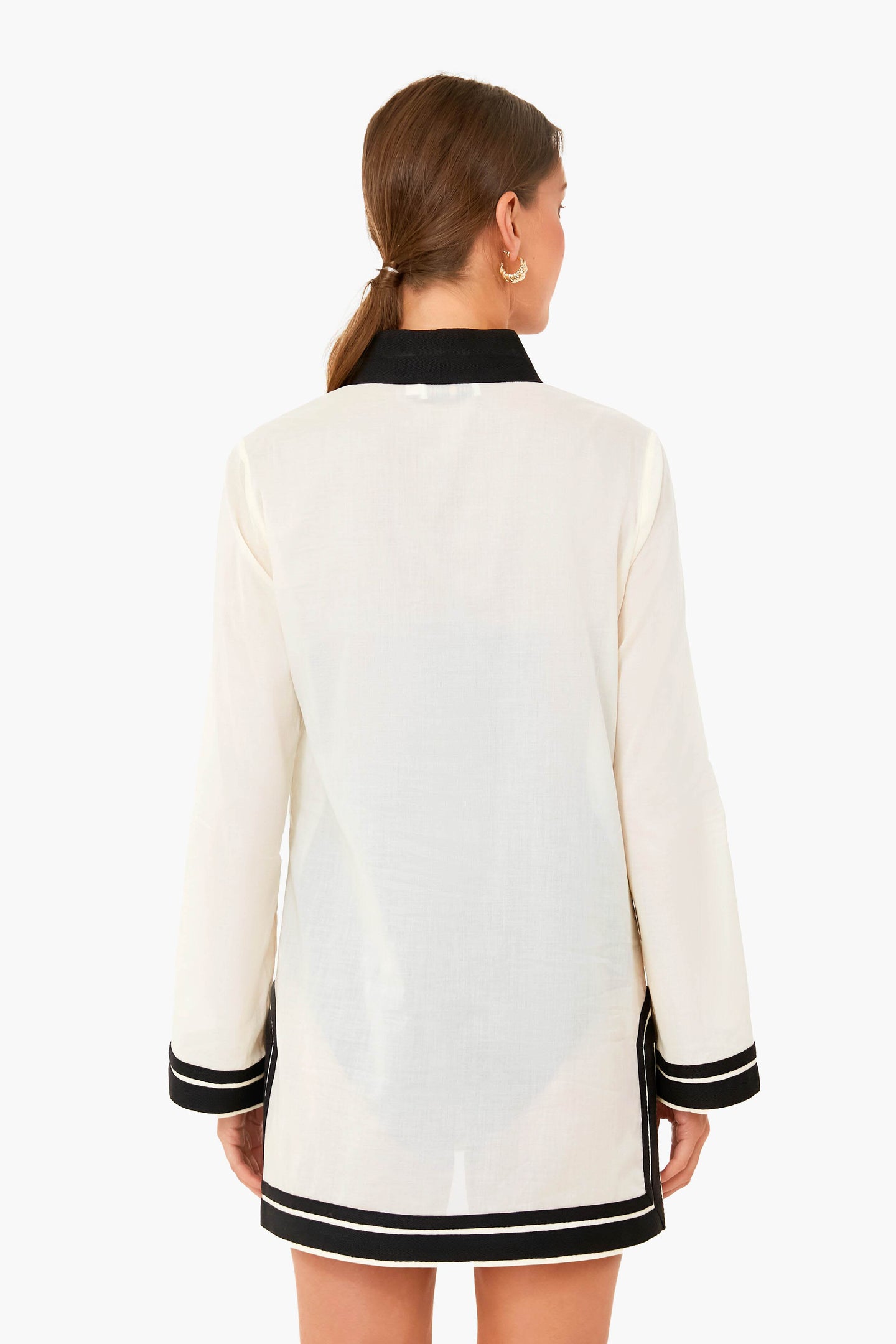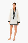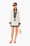 In lightweight cotton voile, the French Cream and Black Tory Tunic is the epitome of understated glamour. Universally flattering in a relaxed cut, this mini features a stand collar, contrast piping, and a hanging tassel detail. Wear this breezy silhouette while sitting poolside or sipping palomas, just pair with sandals and sunglasses for an effortless look.