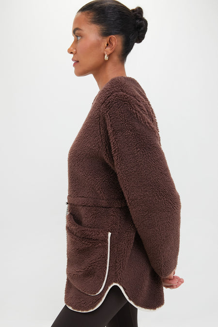 Made from textured and insulating Sherpa, this elegant coat is your perfect throw-on layer for fall and beyond. It boasts large patch pockets and a drawstring waistband for a flattering, modern fit!
