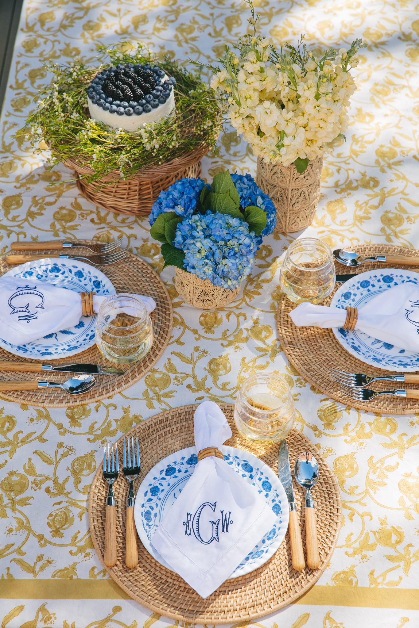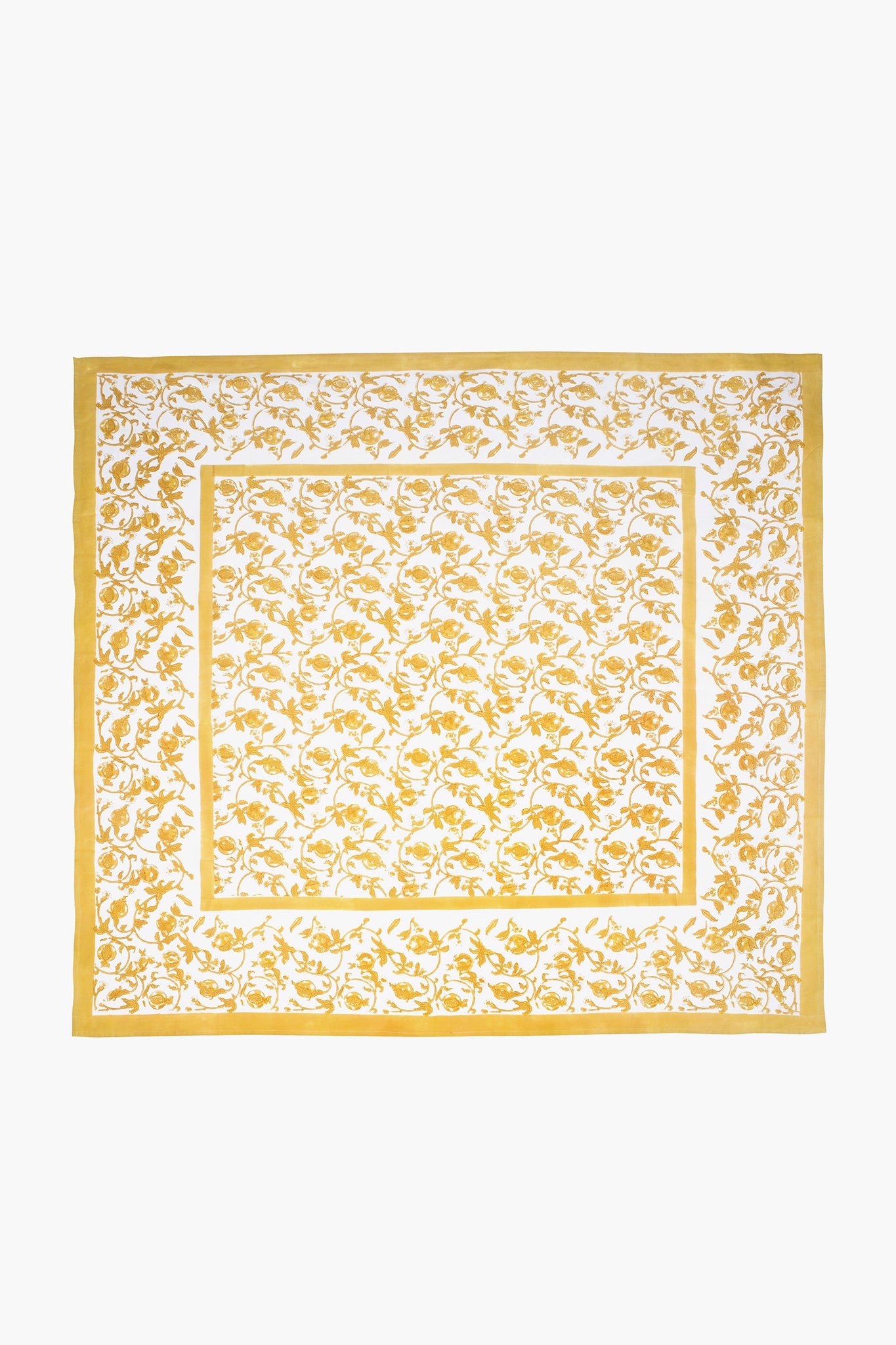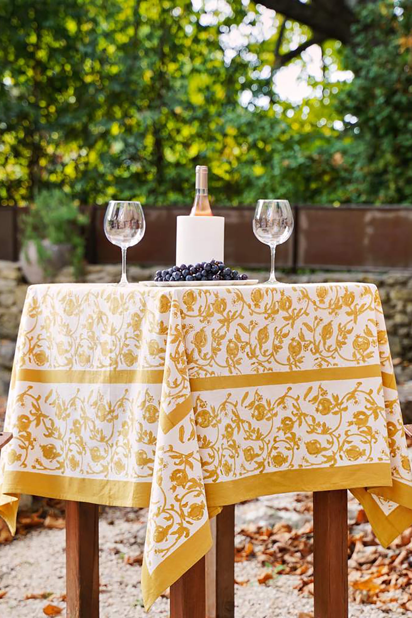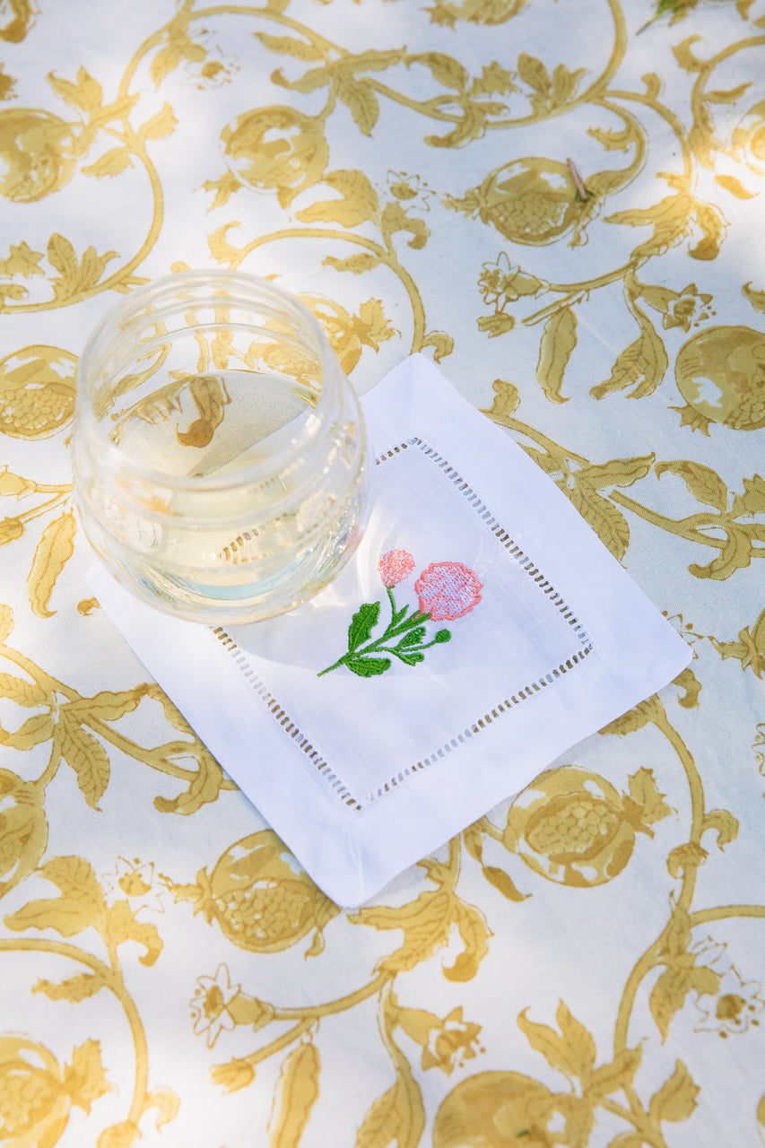 The French Tablecloth Granada Mustard features botanical imagery inspired by the verdant beauty of the Provençal countryside. Each handmade linen varies slightly, making every one a unique piece of art. This tablecloth will elevate any tablescape, from holidays to family dinners!