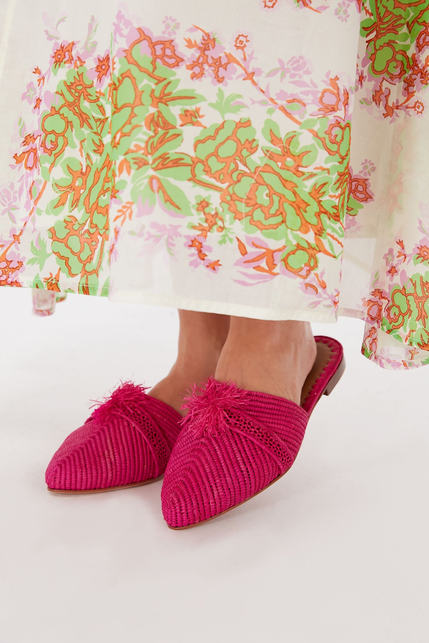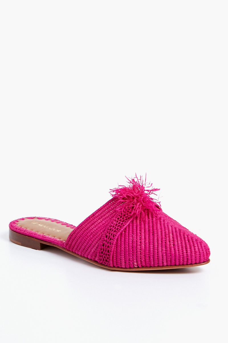 The Fuchsia Taormina Mules combine bright colors with natural materials creating the perfect mix of bold and effortless silhouettes. Featuring a pointed toe and a subtle pom embellishment, these fun flats are sure to zhoosh up any look. Pair it with a printed maxi for an effortless vacation look or with luxe trousers for festive celebrations!