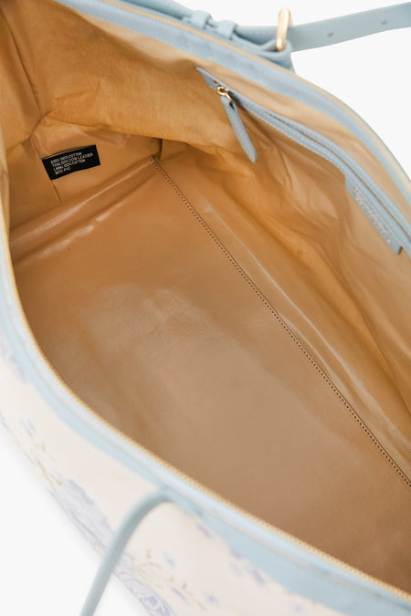 - Material: Canvas and blue pebbled leather, Coated interior lining