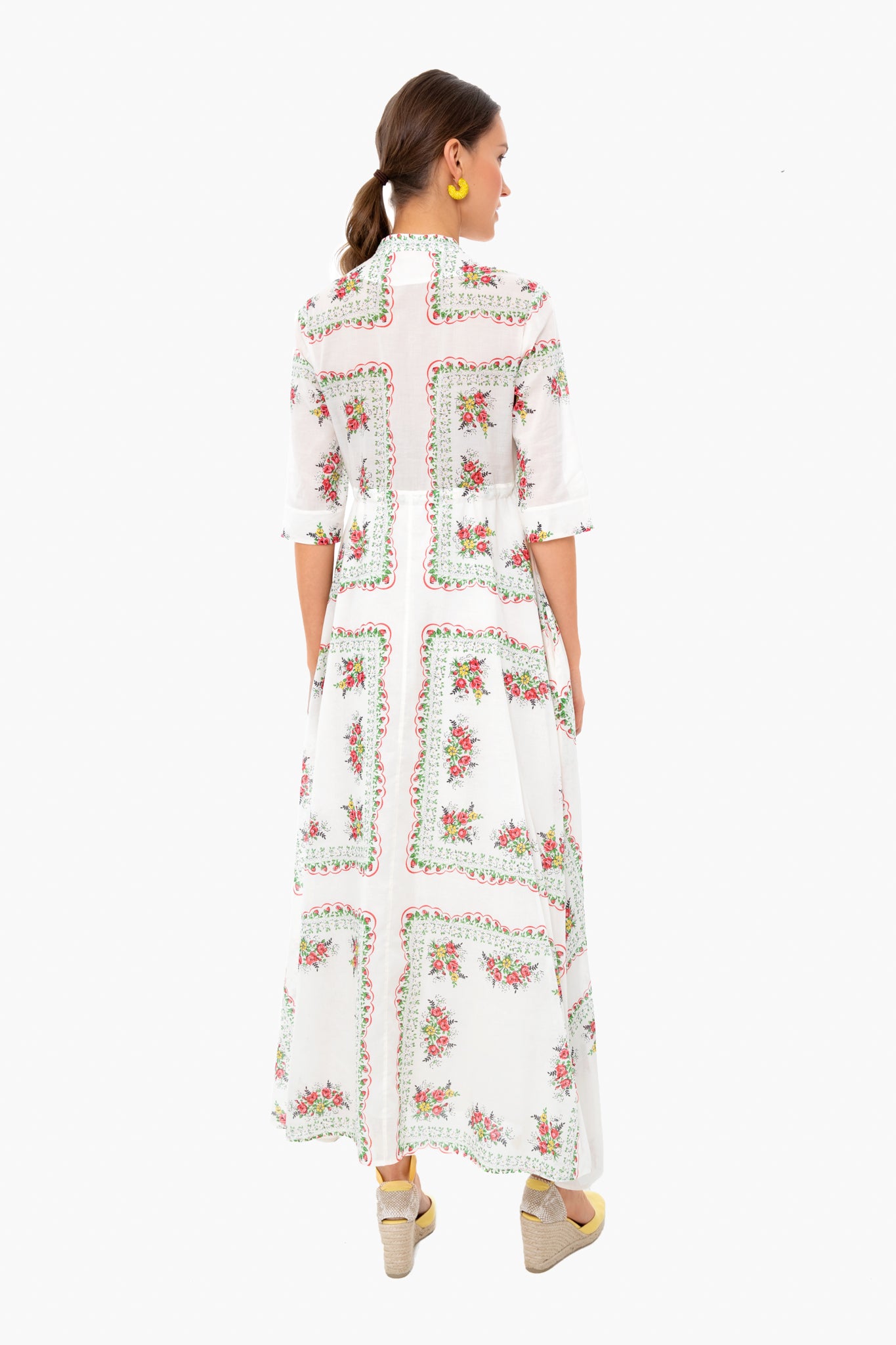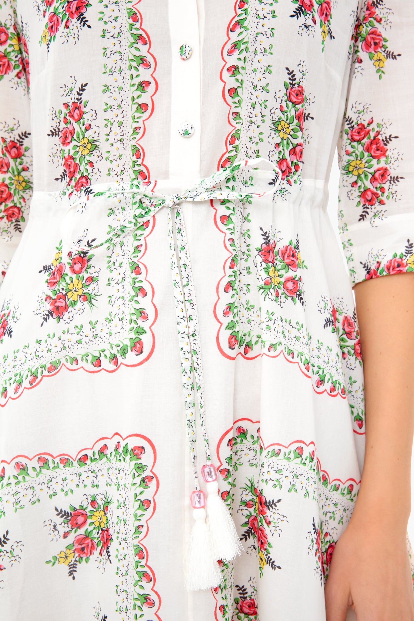 The Printed Shirtdress is a light, effortless style, perfect for the beach, with cinching ties to define the waist. It's made from cotton in a pattern that draws on the season's inspirations: English garden florals, tea roses and bud prints.