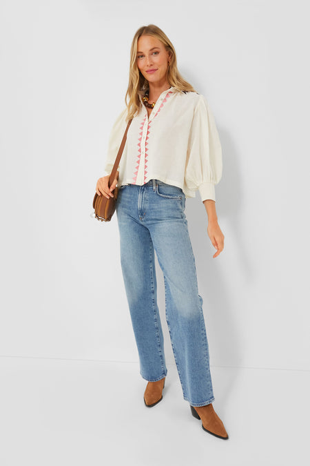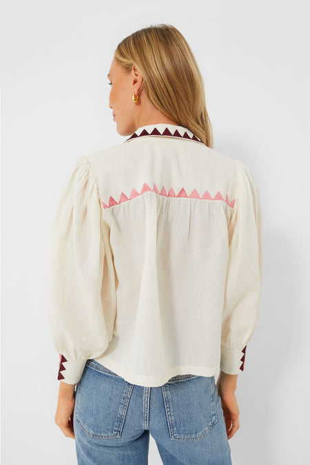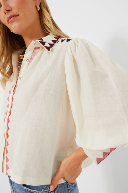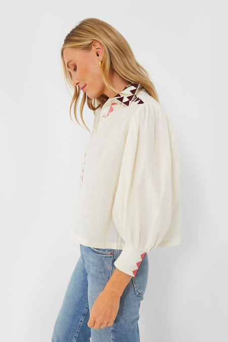 The Gardenia Elisa Blouse delivers a bohemian-inspired silhouette with a naturally chic feel that we love. Complete with a spread collar, long puff sleeves, and shirred cuffs, this top is the perfect lightweight, transitional piece you need in your wardrobe this season. Our favorite feature has to be the gorgeously colorful embroidered detailing throughout. Style with your favorite denim and heels for a fun and fresh look, or pair with a mini skirt and boots for date night.