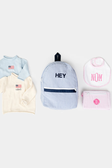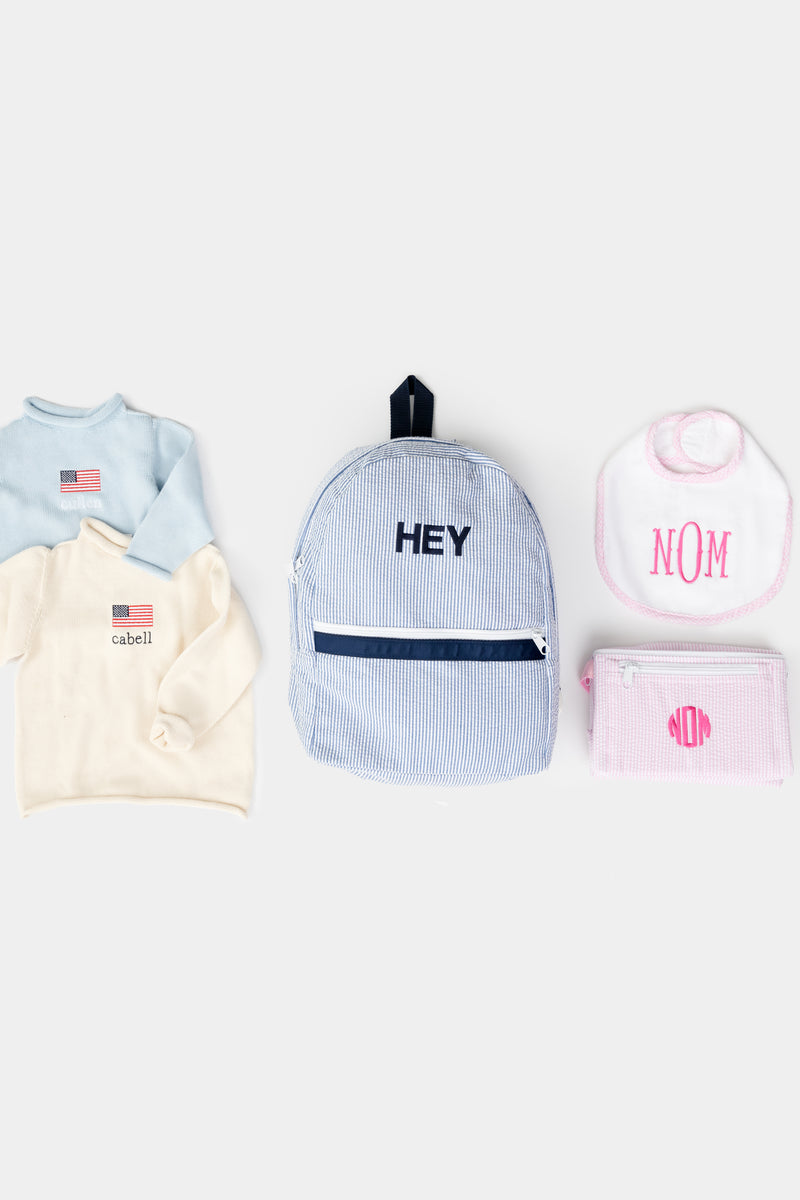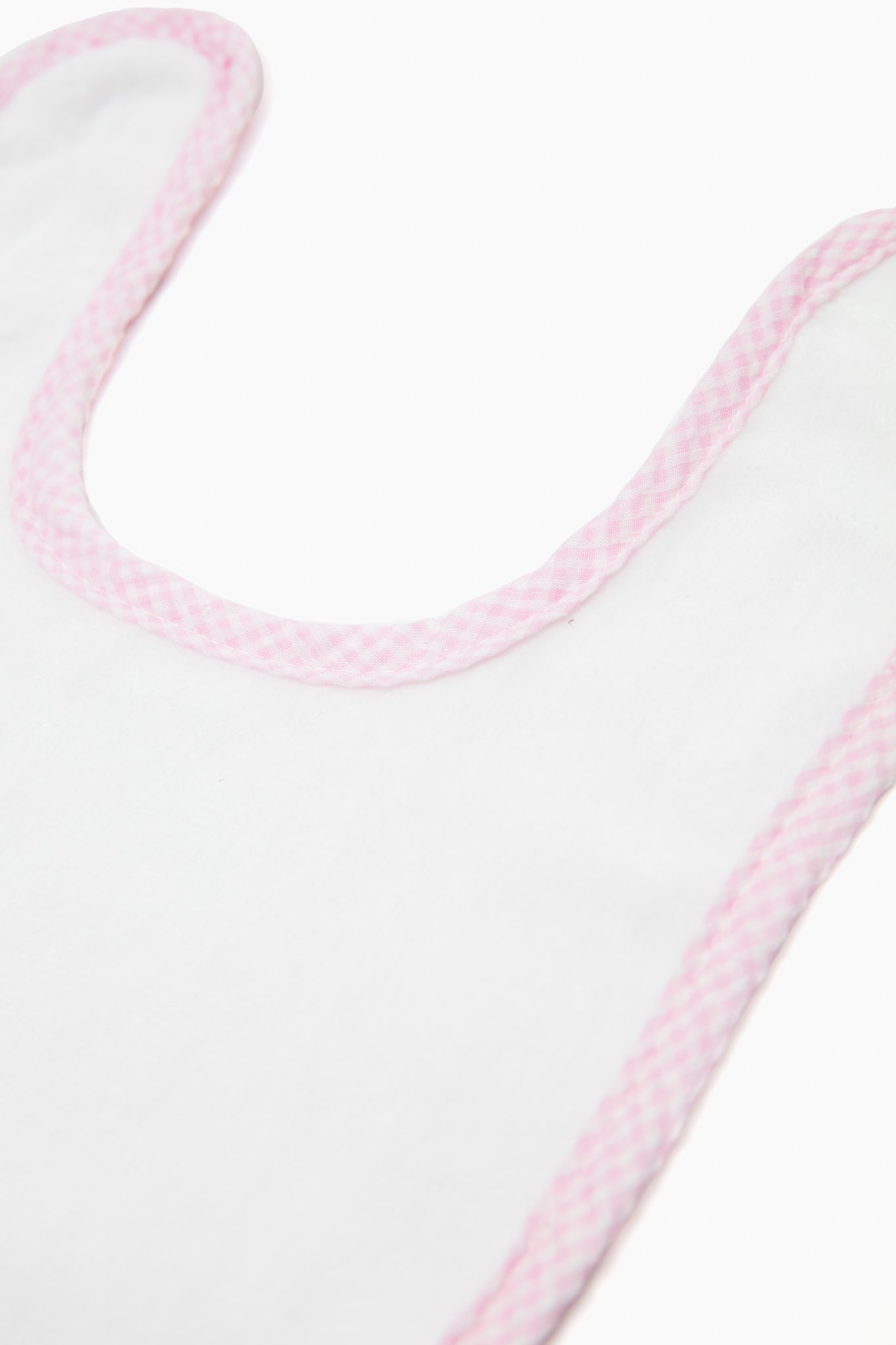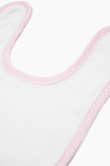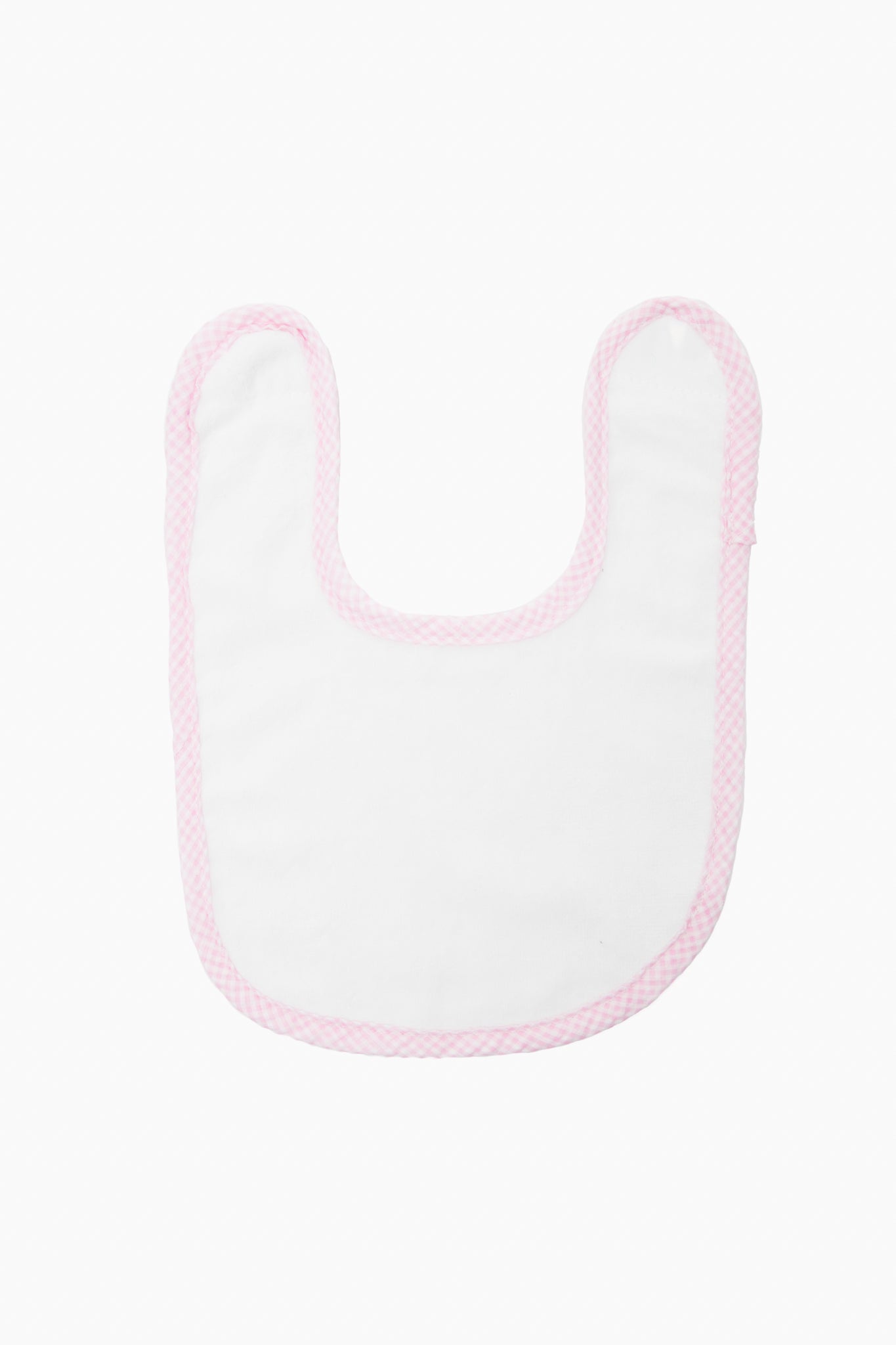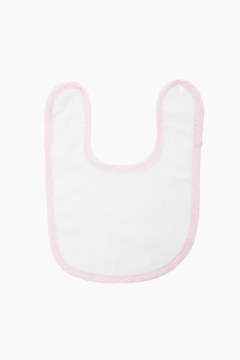 Make eating a mess-free adventure! This bib has a gingham trimmed edge and can be monogrammed!
