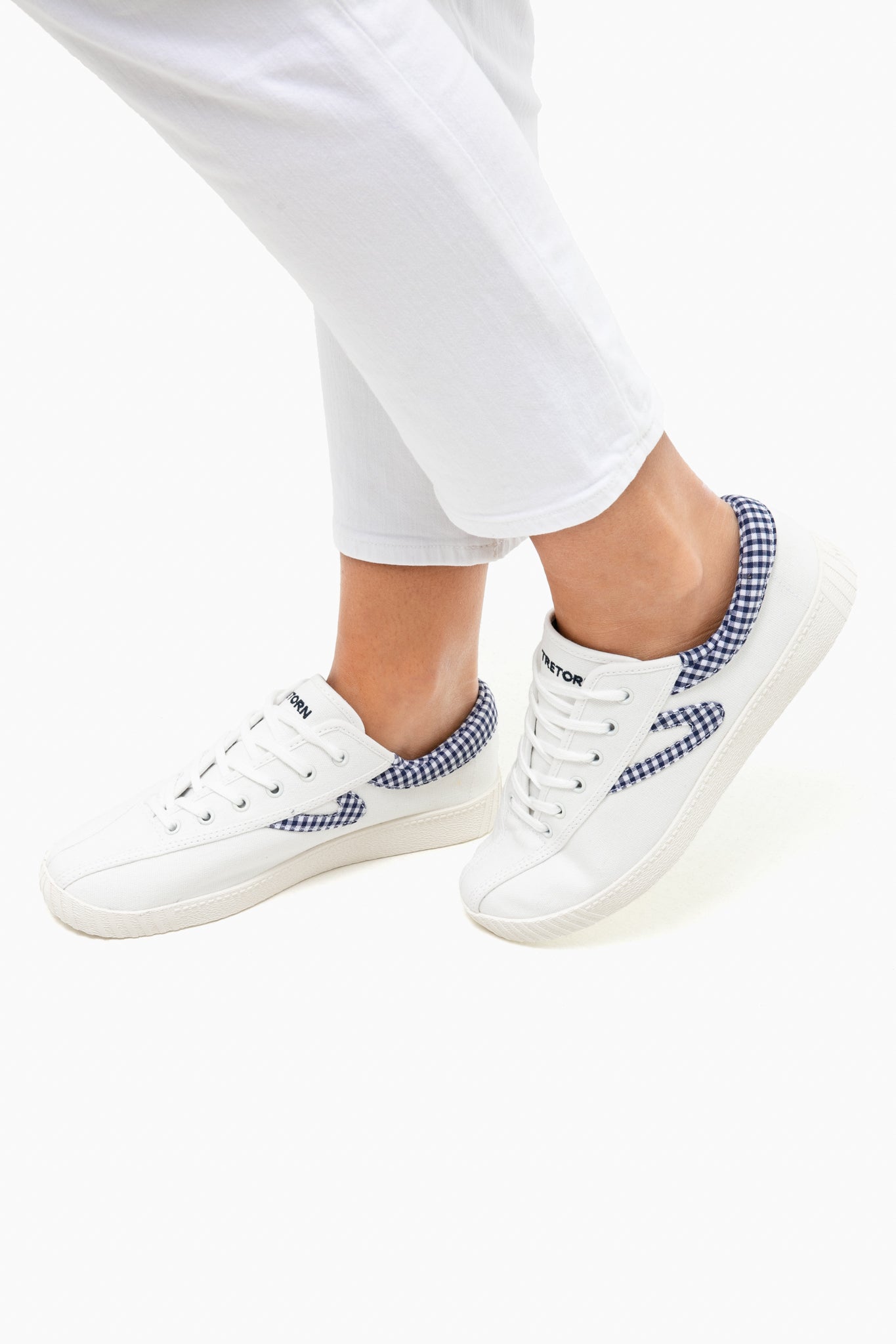 Created in 1964, the Tretorn Nylite Canvas Sneaker is widely regarded as the first luxury sports shoe. Immortalized in the 1980's by The Official Preppy Handbook, this classic canvas sneaker has a fun update with navy gingham detailing.